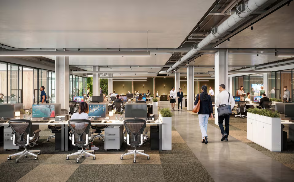 - Features a soaring two-story-high atrium lobby, new elevator cabs, as well as infrastructure upgrades such as the new cooling plant, increased electric capacity, and a state-of-the-art security system.