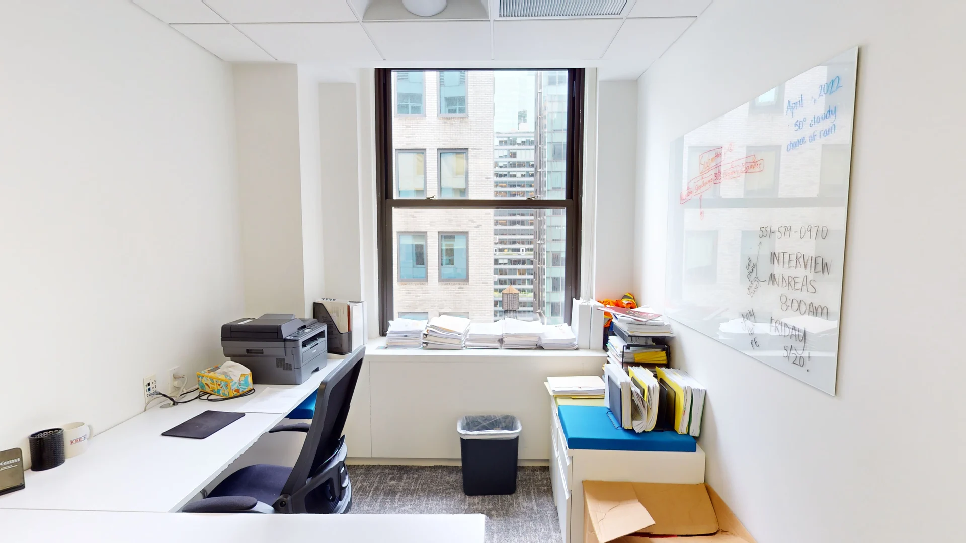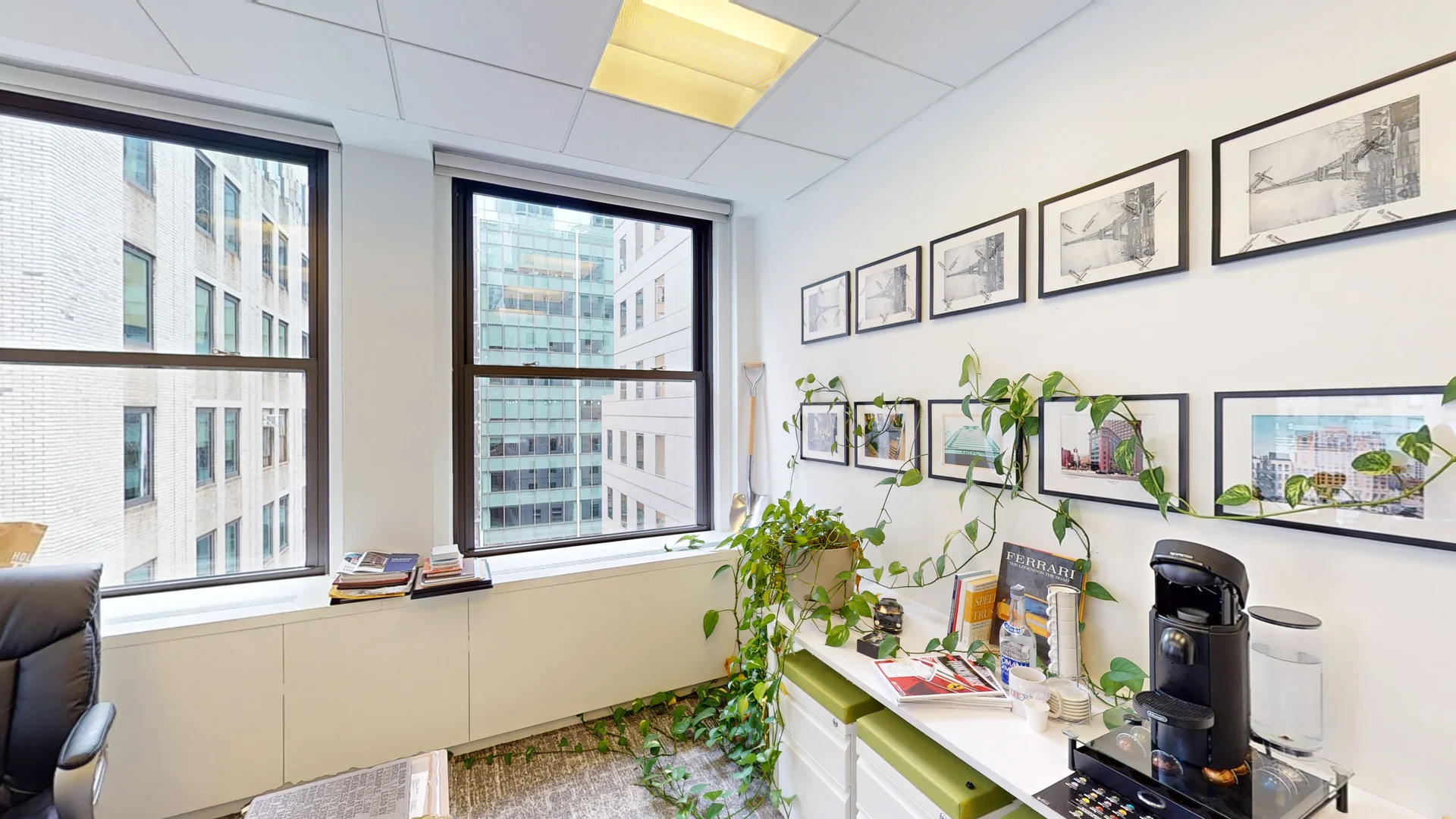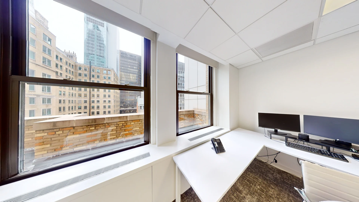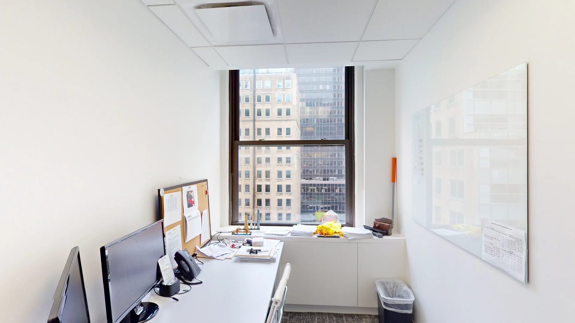 - This 17th-floor space is surrounded by large windows, providing natural light exposure from all four sides.