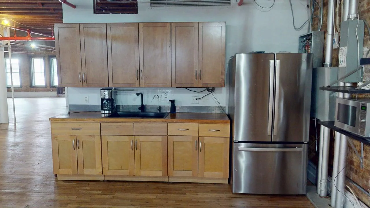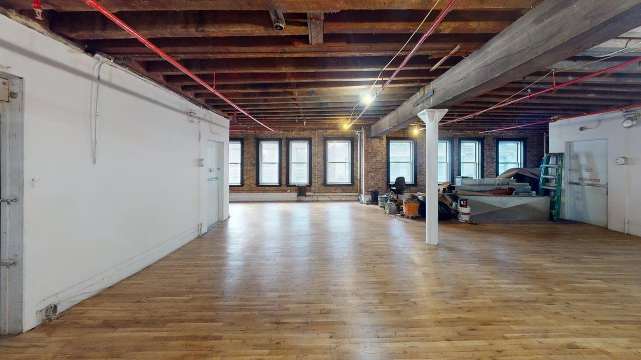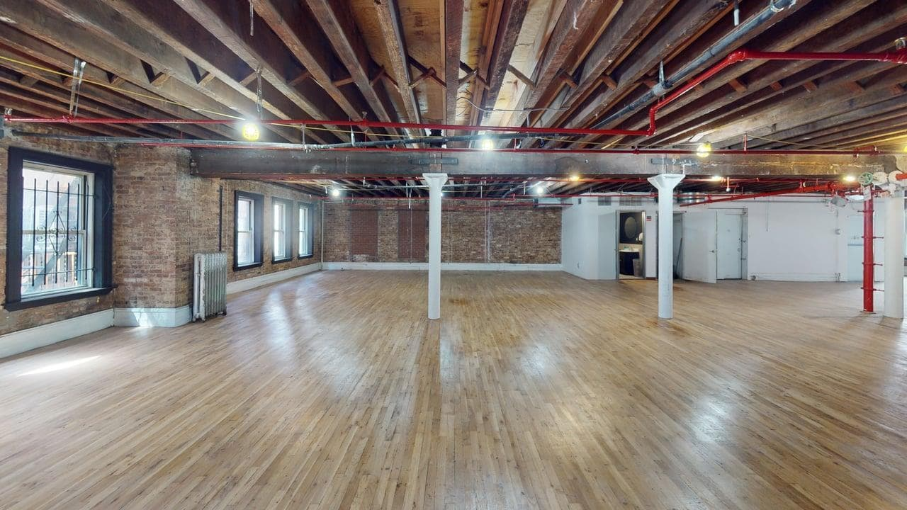 - Hardwood floors, exposed ceilings, brick all throughout the space.