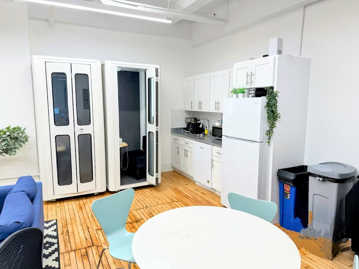 The fully built, move-in-ready space features an open bullpen, two private offices and a conference room