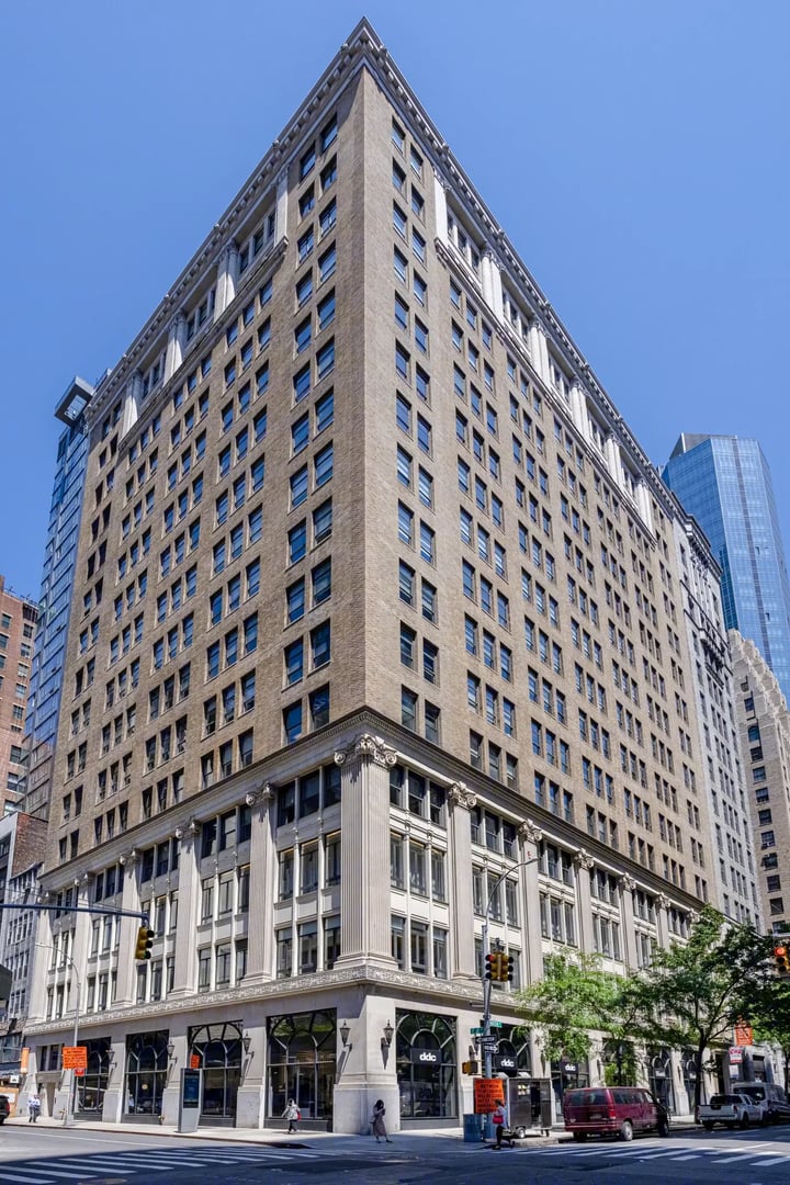 - The majestic vestibule is distinguished by travertine marble walls and floor, a liquid crystal building directory, and a card reader for the building’s tenants.