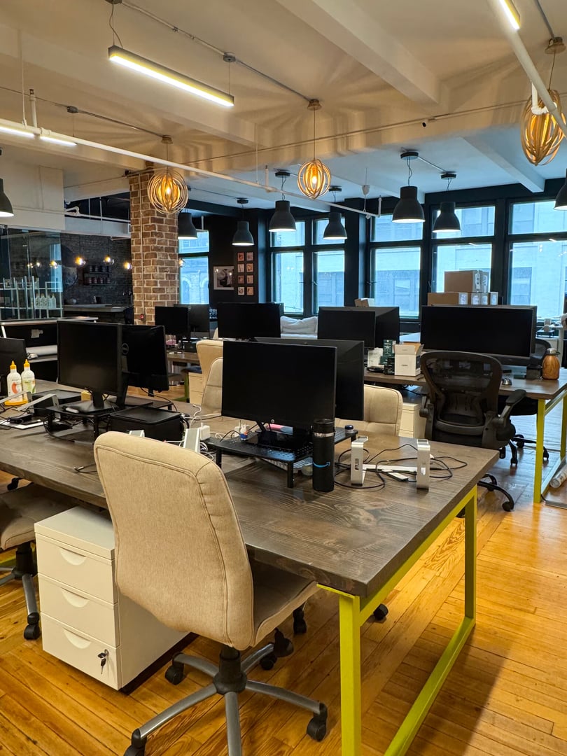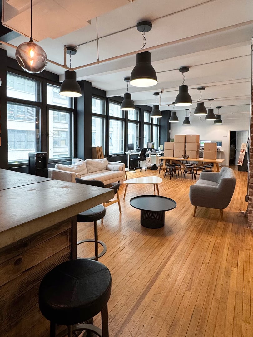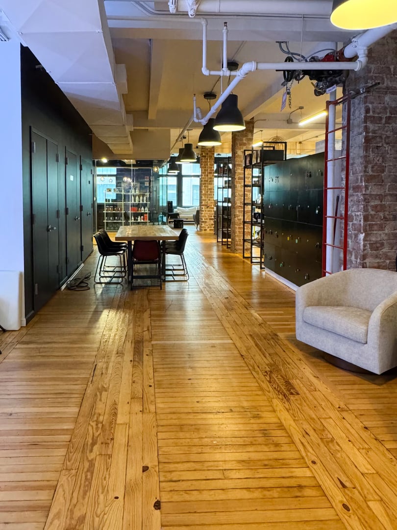 - Finished with hardwood floors, oversized windows, glass-fronted conference rooms, and exposed columns, ceilings, and brick.