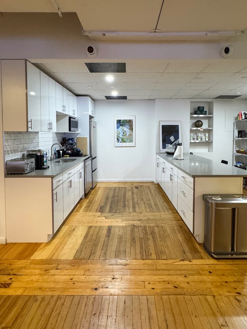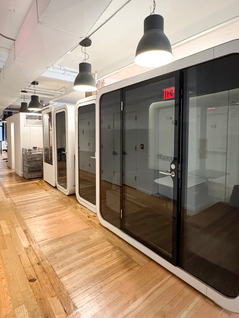 - Creative installation featuring 1 board room, 3 conference rooms, 4 phone booths, open area with 30 desks (with room to densify to 50+), wet pantry, private restrooms, and multiple collaboration areas.