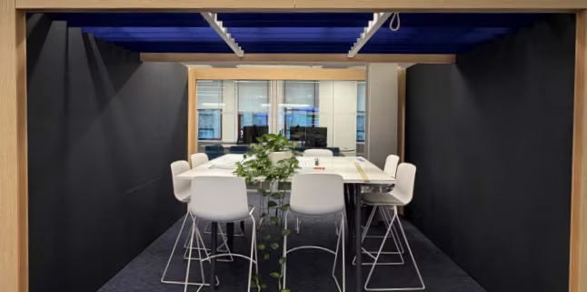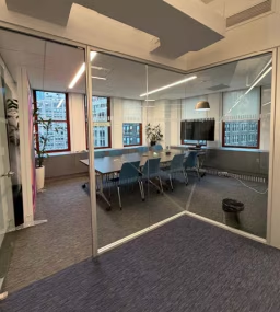 - Fully furnished with upscale sit/stand desks and executive offices.