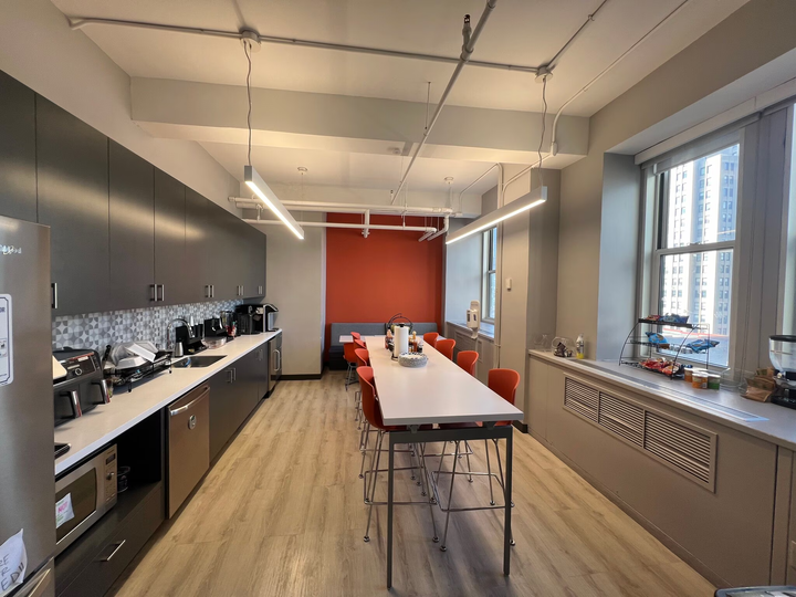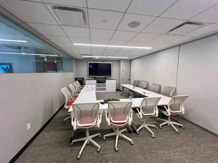 - 2 adjacent boardrooms with retractable wall, 10 private glass-front offices, 44 sit-stand workstations, 1 wellness/mothers’ room and an eat-in pantry