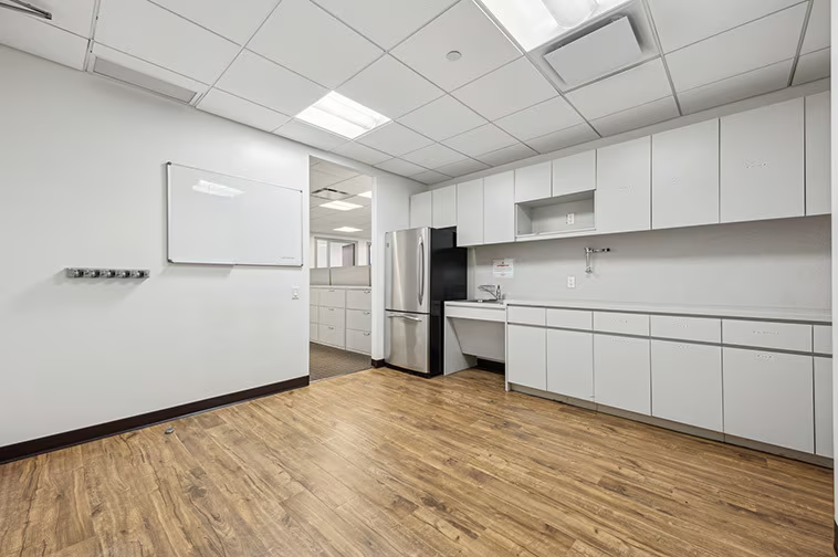 Existing installation with 5 offices, 1 conference room, open area for 11 workstations and pantry.