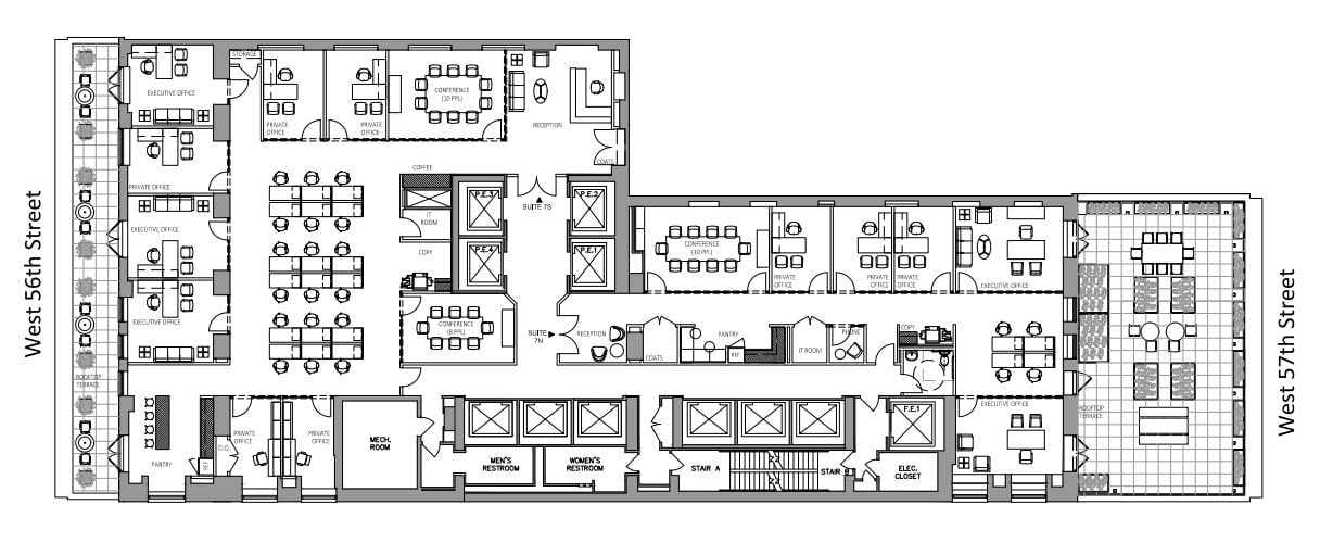 - Unparalleled full floor boasts TWO outdoor terraces on each of 57th and 56th Streets.