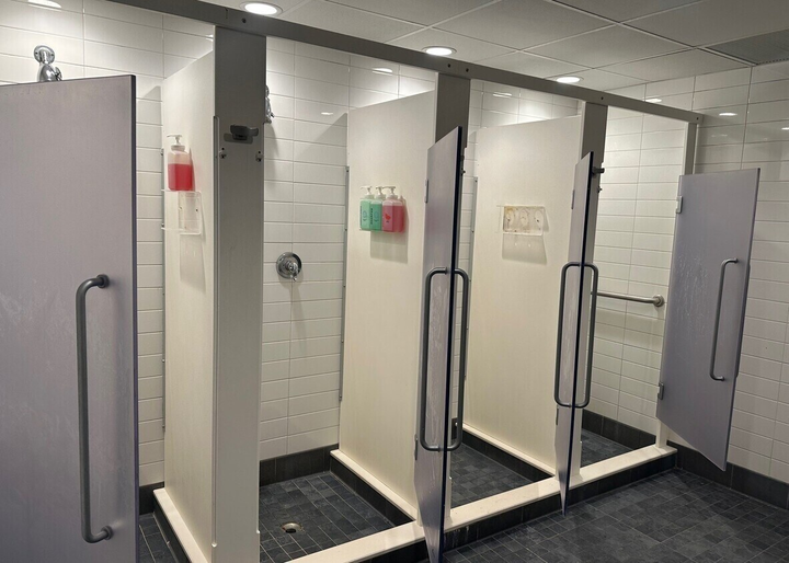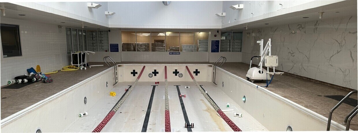 - Locker rooms and pool in place
