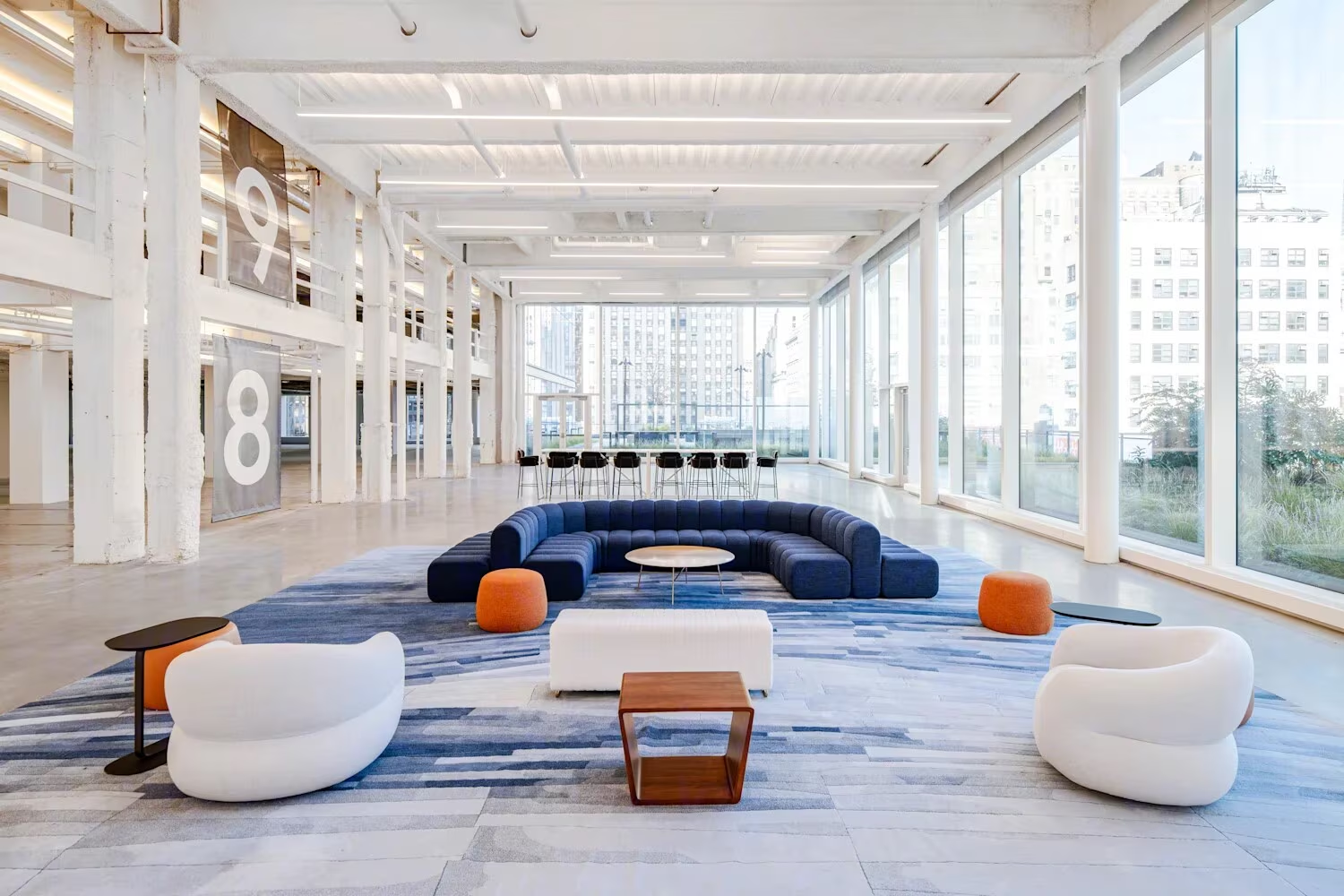 - Double height (22’10”) floor to ceiling space connects the 8th and 9th floors