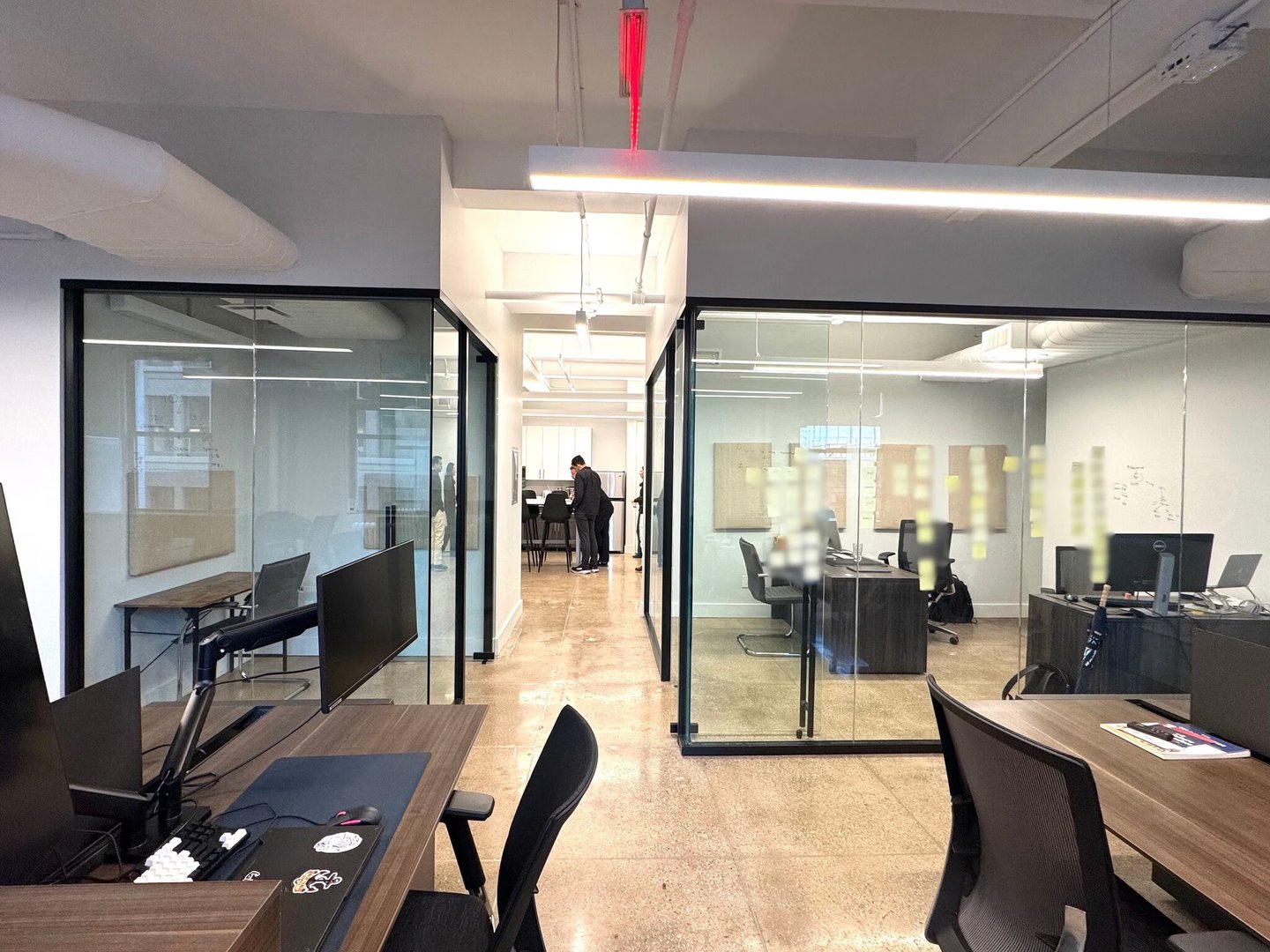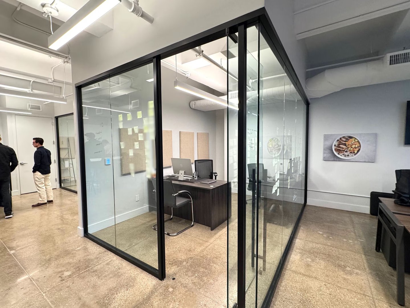 Built with 12 workstations, 1 glass fronted office, 1 glass fronted conference room and 1 glass fronted phone booth