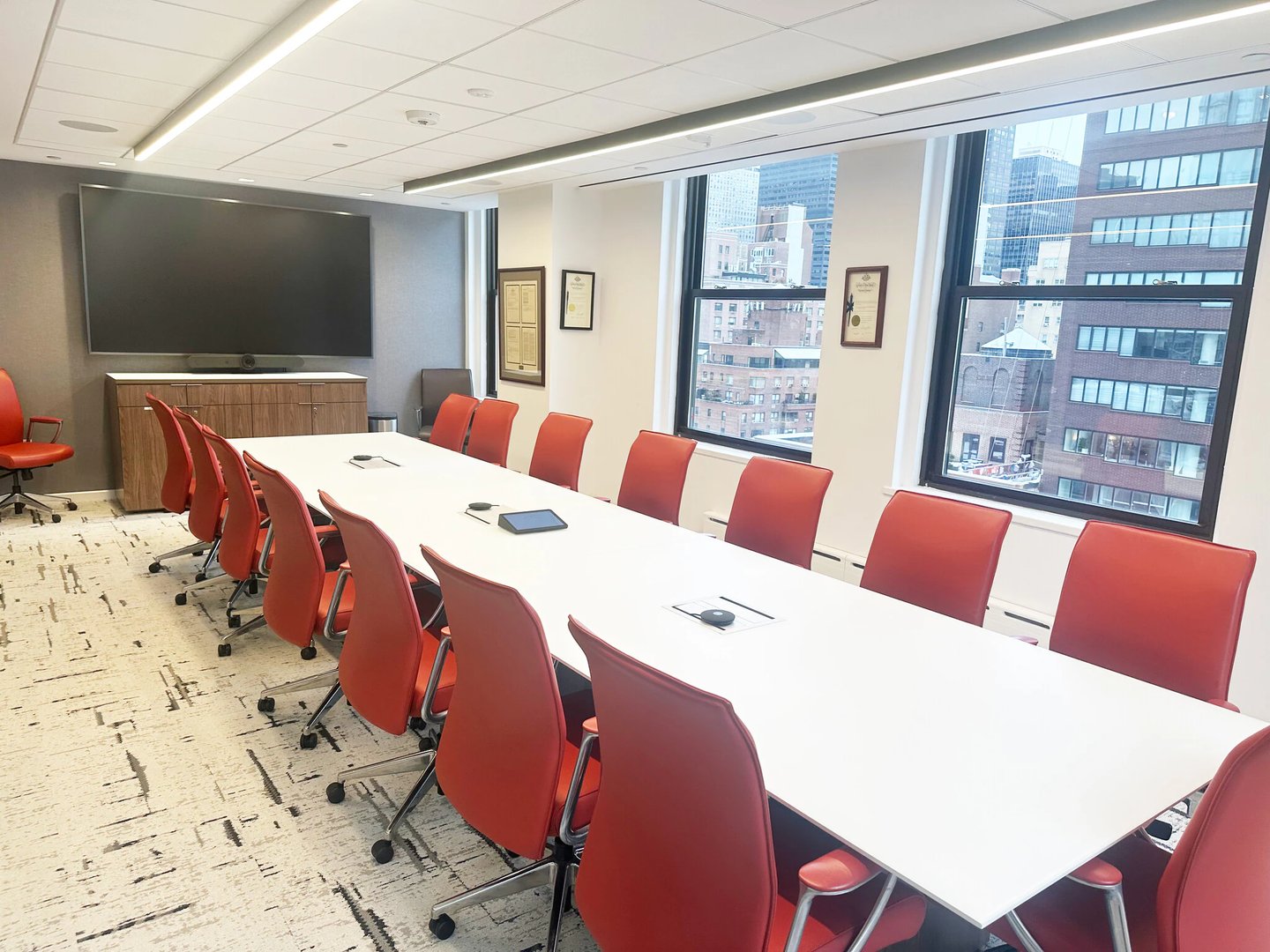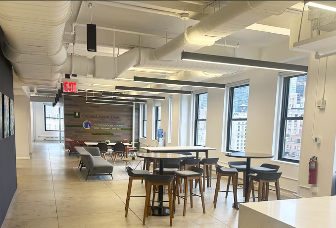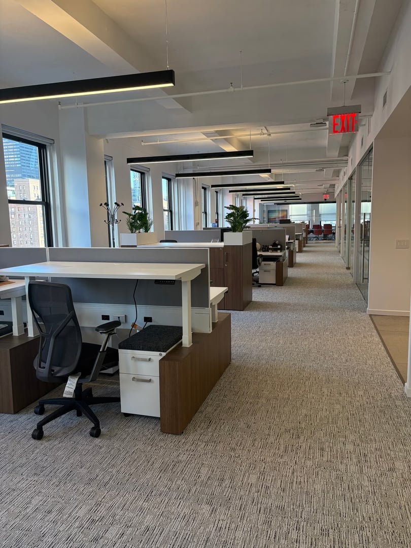 - 40 workstations, 13 private offices, 3 conference rooms (seating 8, 12, and 16), 2 training/collaboration rooms with retractable wall (seats up to 40), large 8-window town hall/pantry ideal for all-hands meetings