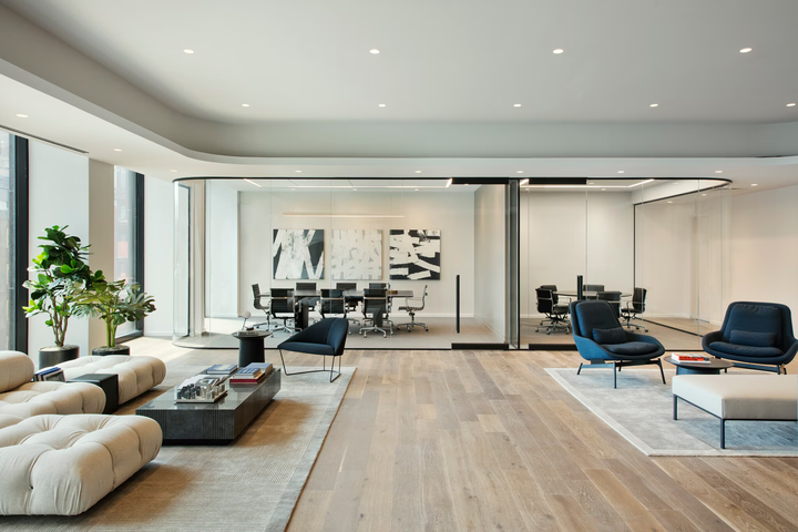 - Premium prebuilt floors designed by Fogarty Finger with sophisticated finishes (e.g. curved glass conference rooms)