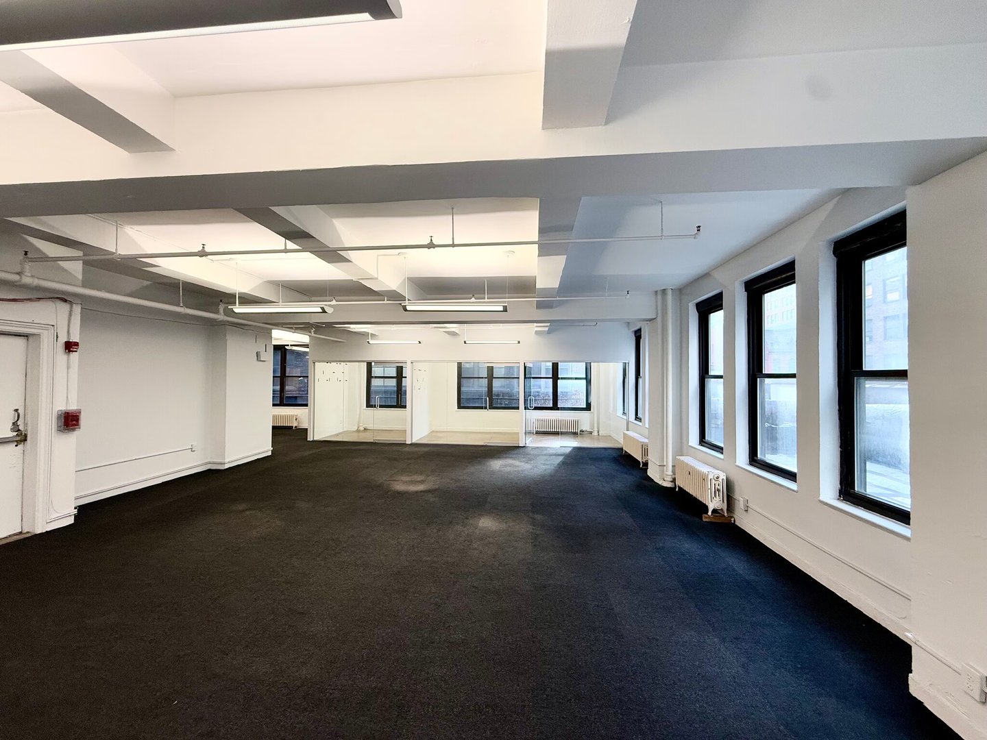 - The space has 3 glass rooms with tons of light.