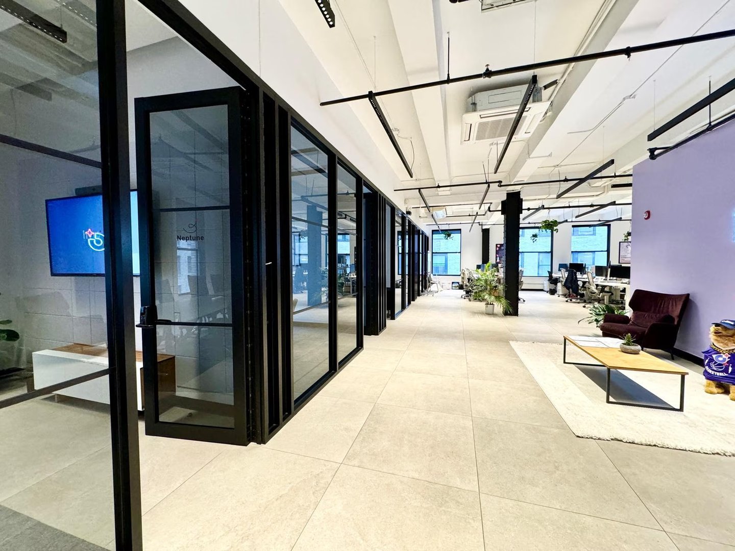Built with 3 conference rooms, 2 offices, 1 meeting room, 2 phone rooms, a wet pantry, lounge areas, open seating for 30+