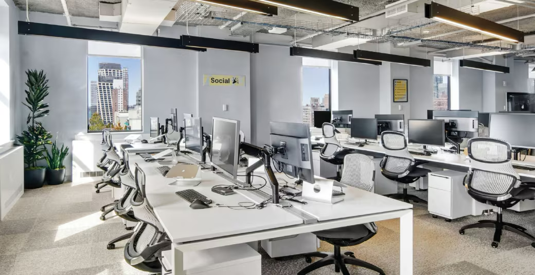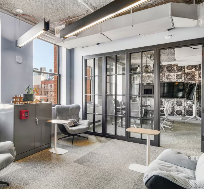 Fully furnished and wired with 80 workstations, 3 conference rooms, 2 phone booths, open pantry.