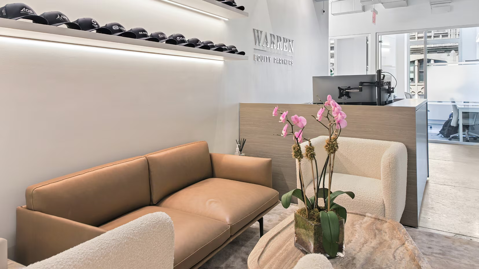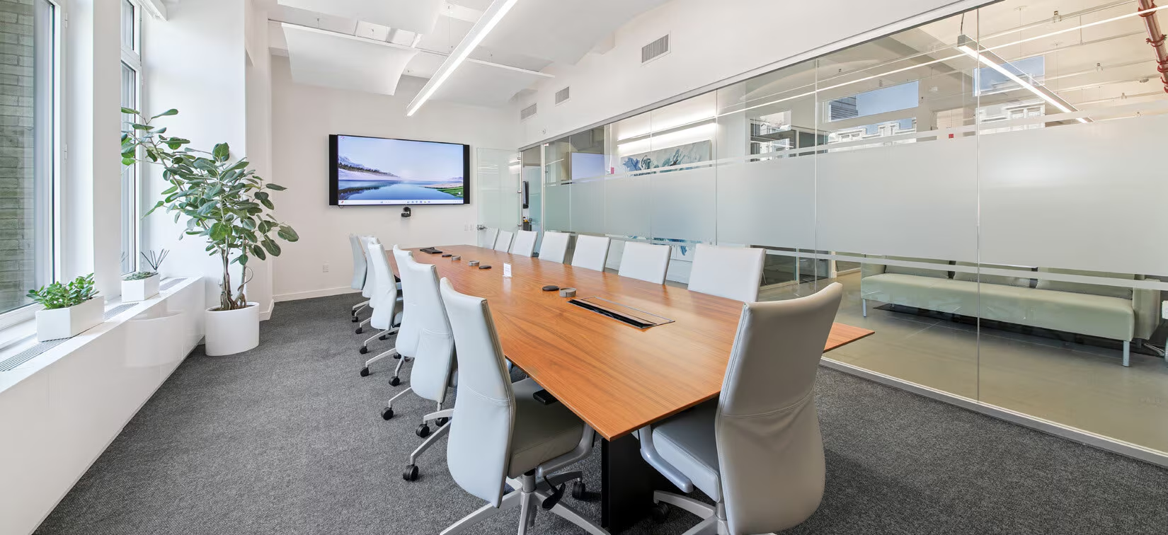 High-end installation, furnished and wired with 13 offices, 1 boardroom, 1 conference room, 8 workstations, private bathroom and shower