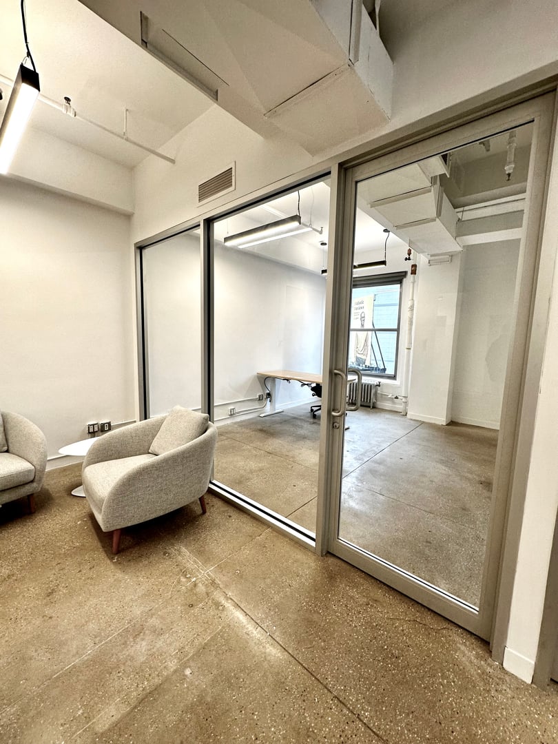 - Modern pre-built move in ready with 2 glass fronted offices and a collaboration area.