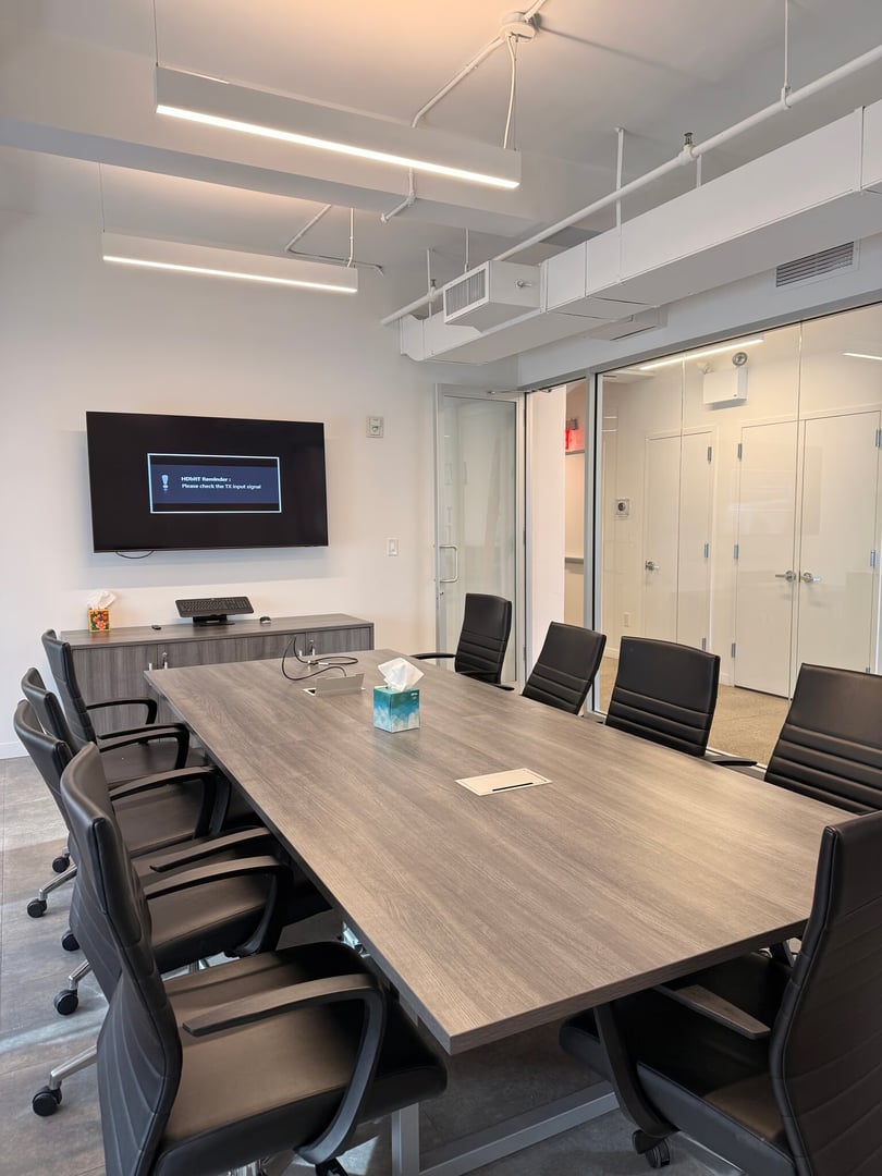 Built with exposed ceiling, LED strip lights, polished concrete floors, glass fronted offices and conference rooms, and private outdoor terrace.