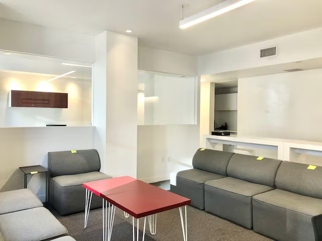 - Built unit with 3 private rooms, pantry, and open bullpen area.