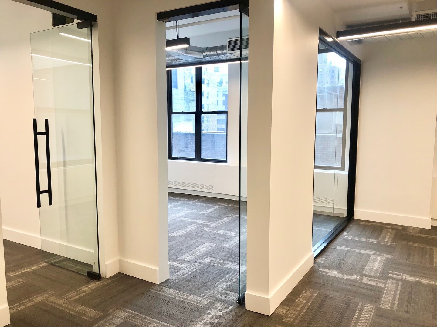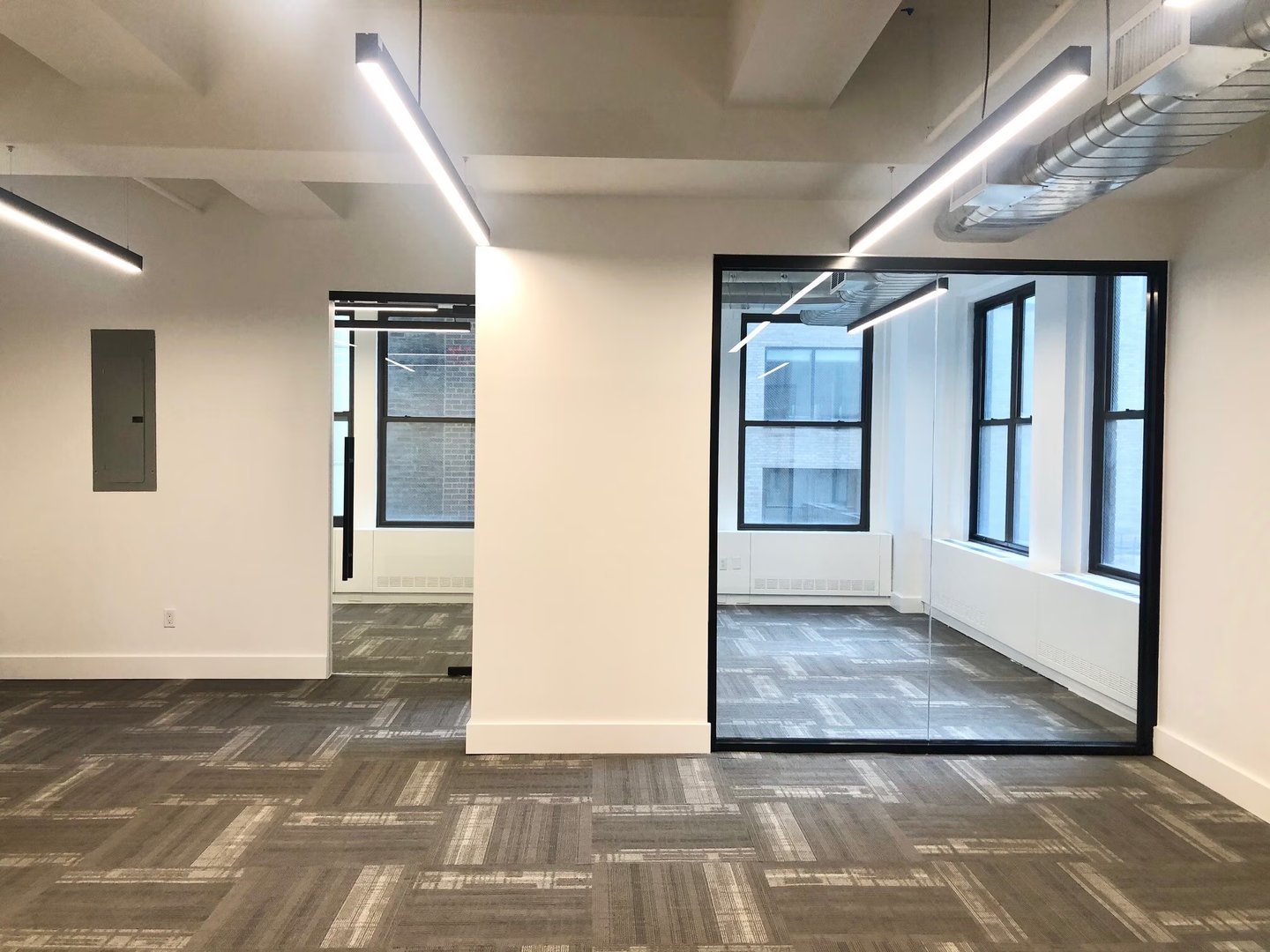 - Newly built unit with one glass fronted conference room, one glass fronted office, pantry and open bullpen area.