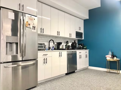 - Built with 3 glass fronted offices, glass fronted conference room, wet pantry, open bull pen area, exposed ceiling, polished concrete floors and LED strip lighting
