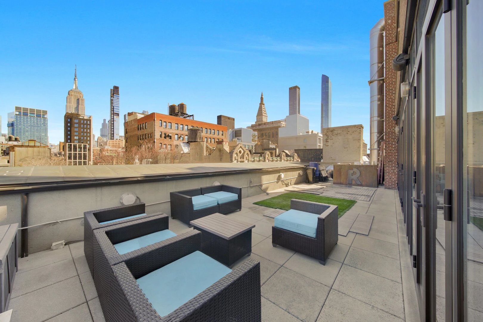 - Two expansive terraces offer sweeping views of both Midtown and Downtown Manhattan.