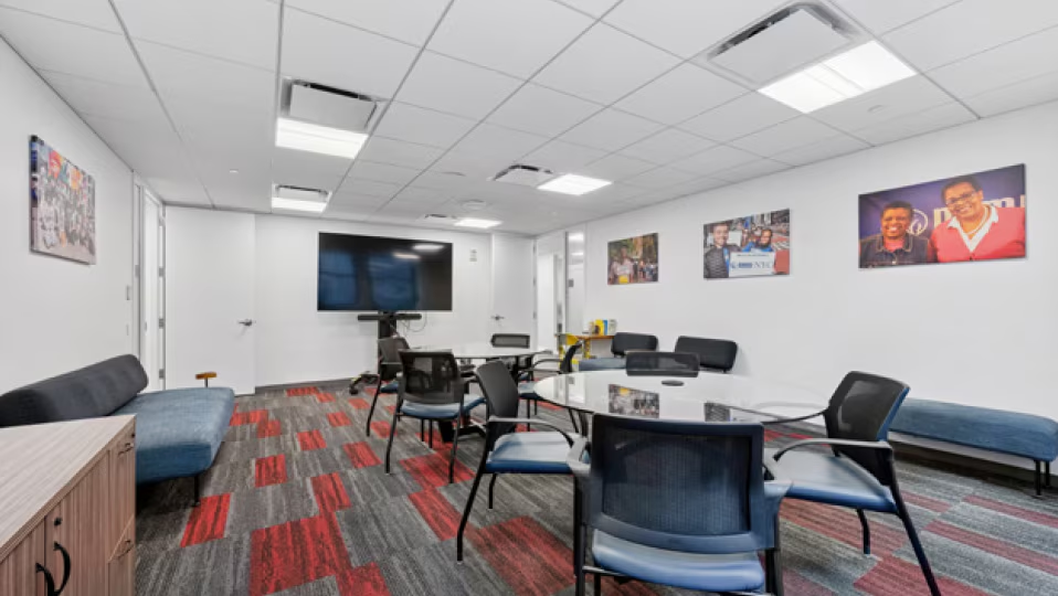 - Efficient layout includes a mix of private offices, meeting rooms, and training rooms
