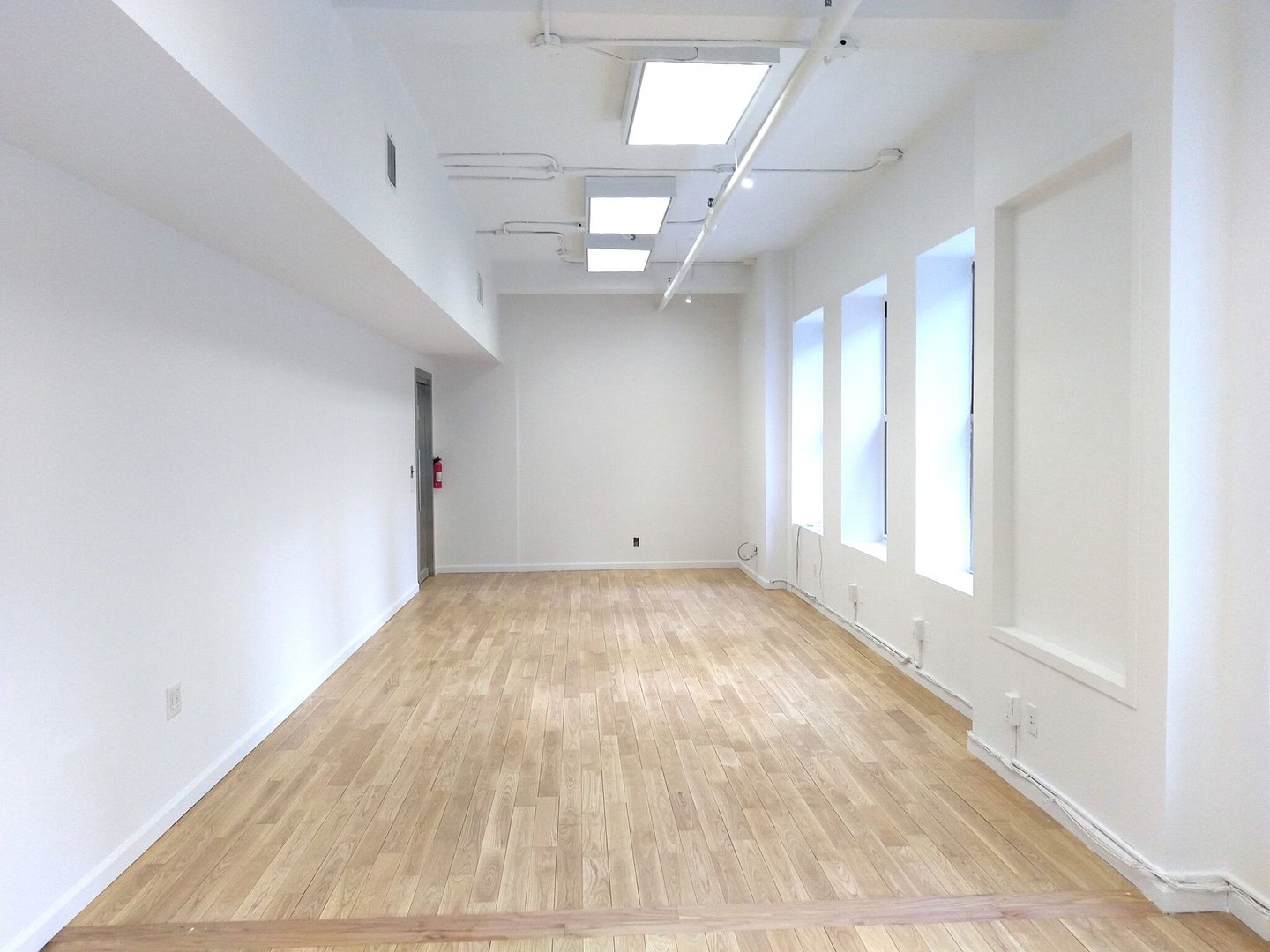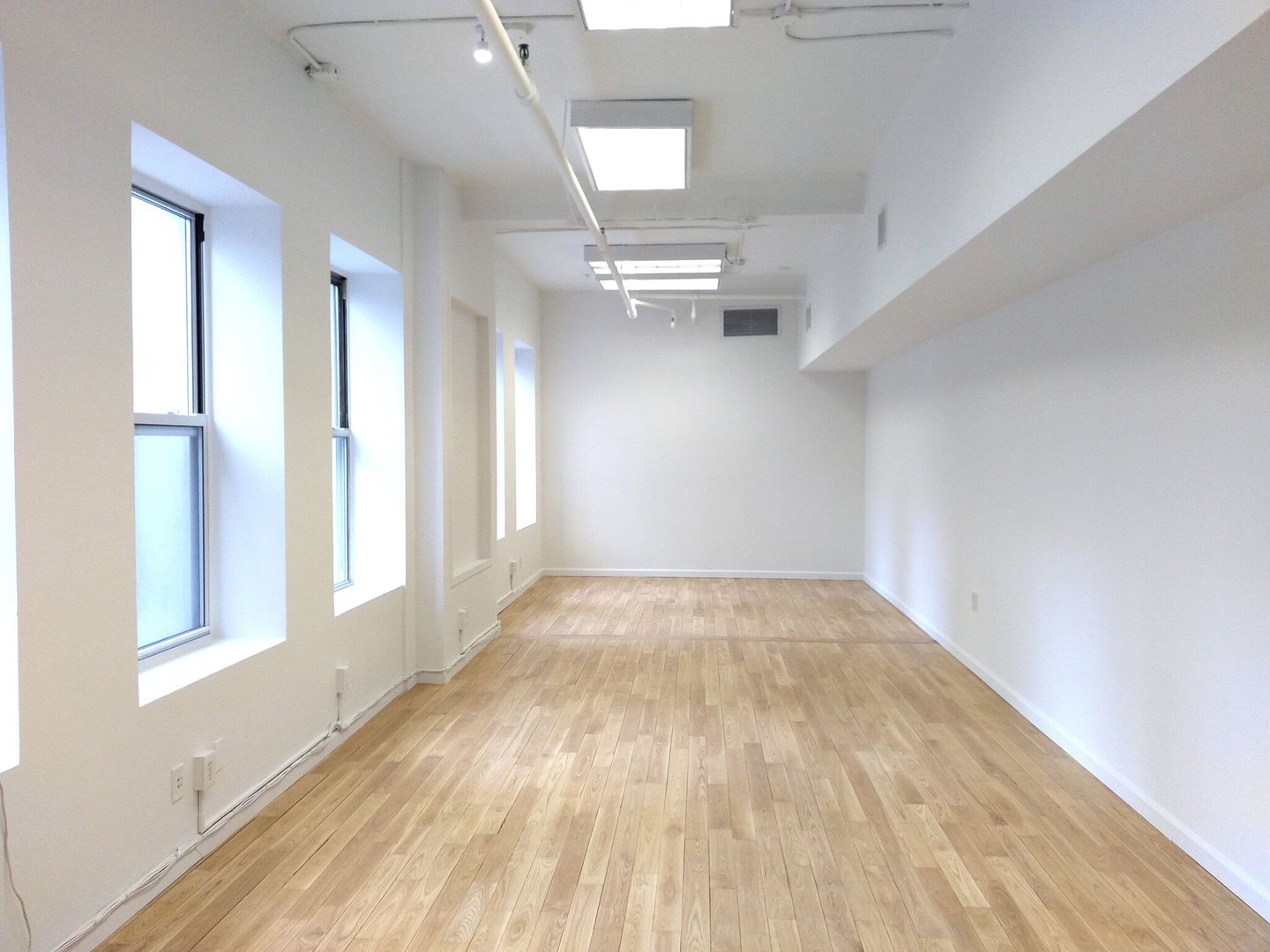 Open layout, very sunny space, hardwood floor, central AC, 5 windows, high ceilings and glass entrance door.