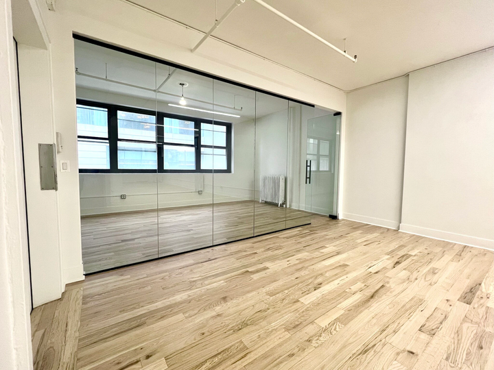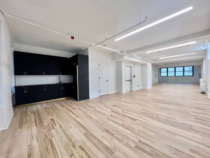 Full Floor prebuilt space with direct elevator access. Features hardwood floors, new LED lighting, glass fronts, and upgraded wet pantry.