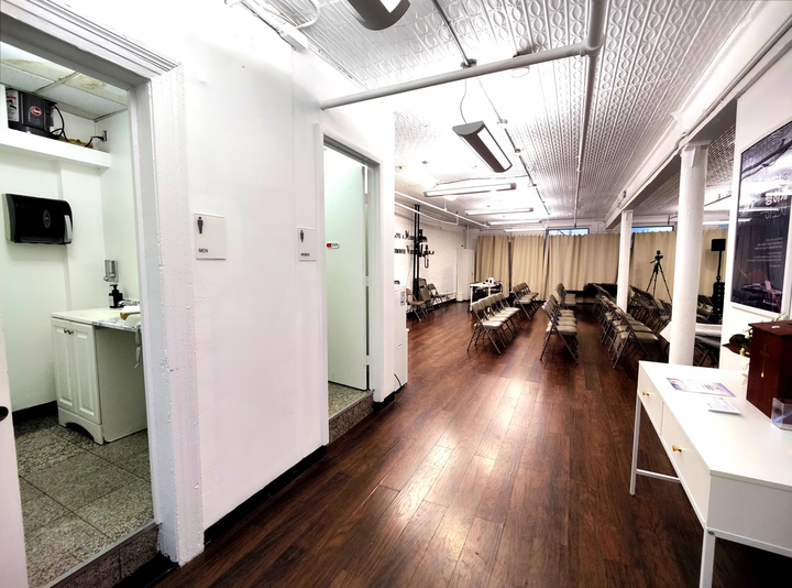 - Will divide into 1,025 SF (The area with private bathrooms) & 1,200 SF