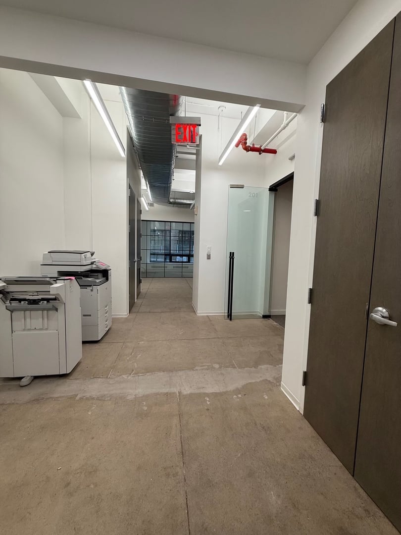 - This suite features 3 private offices, a private phone booth, soaring 14 ft. ceilings, and a wet pantry.