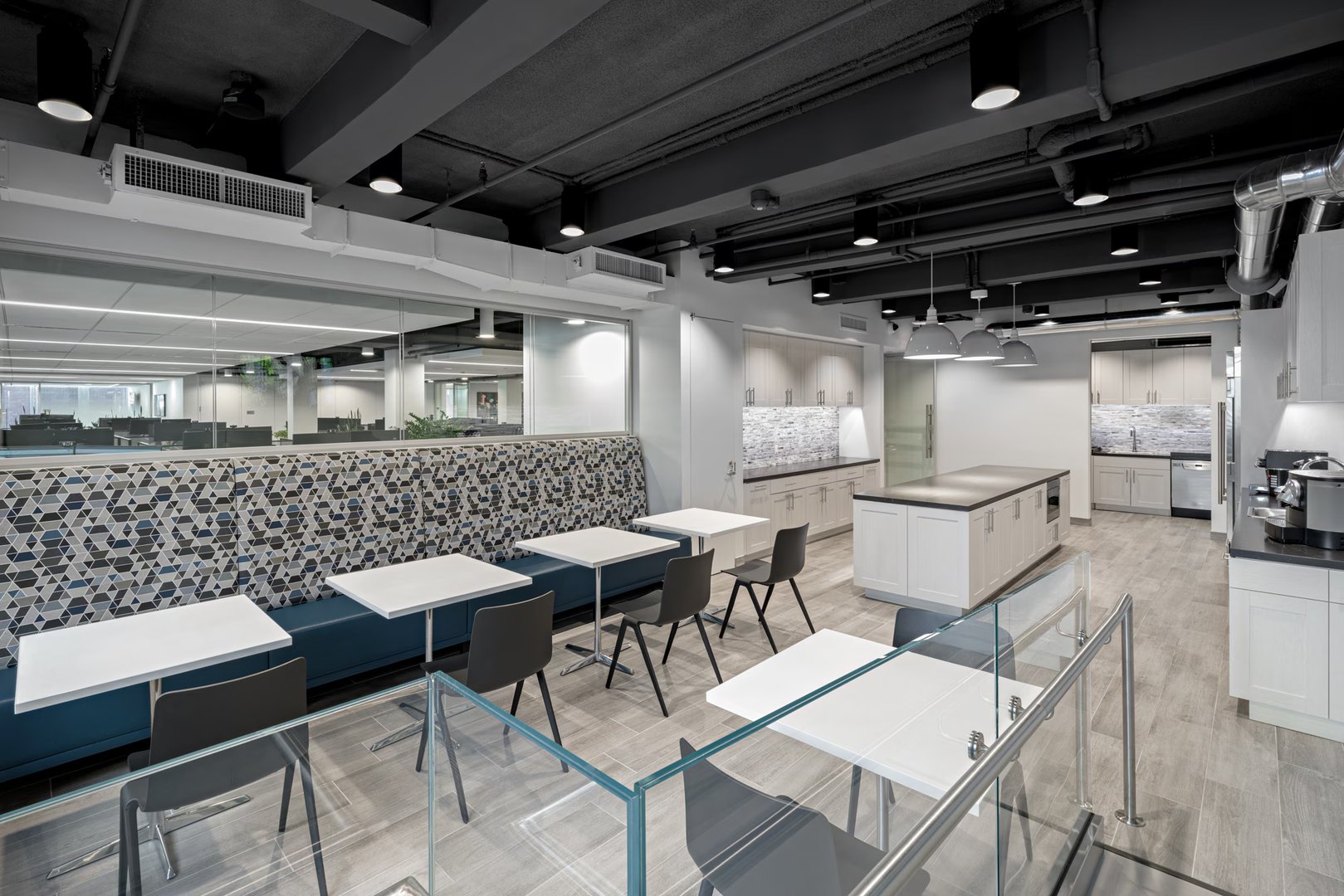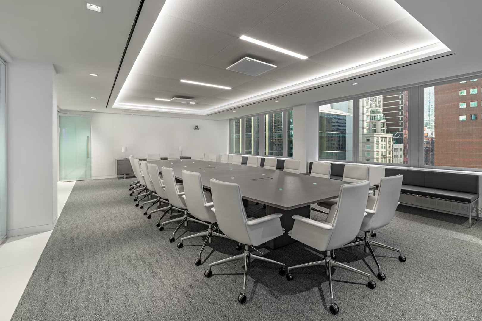 - 8 offices, 44 workstations, 1 boardroom (20 seats), 1 large conference room (14 seats), 2 small conference rooms (8 seats), 1 meeting room, Eat-in kitchen, dedicated reception (4 seats)