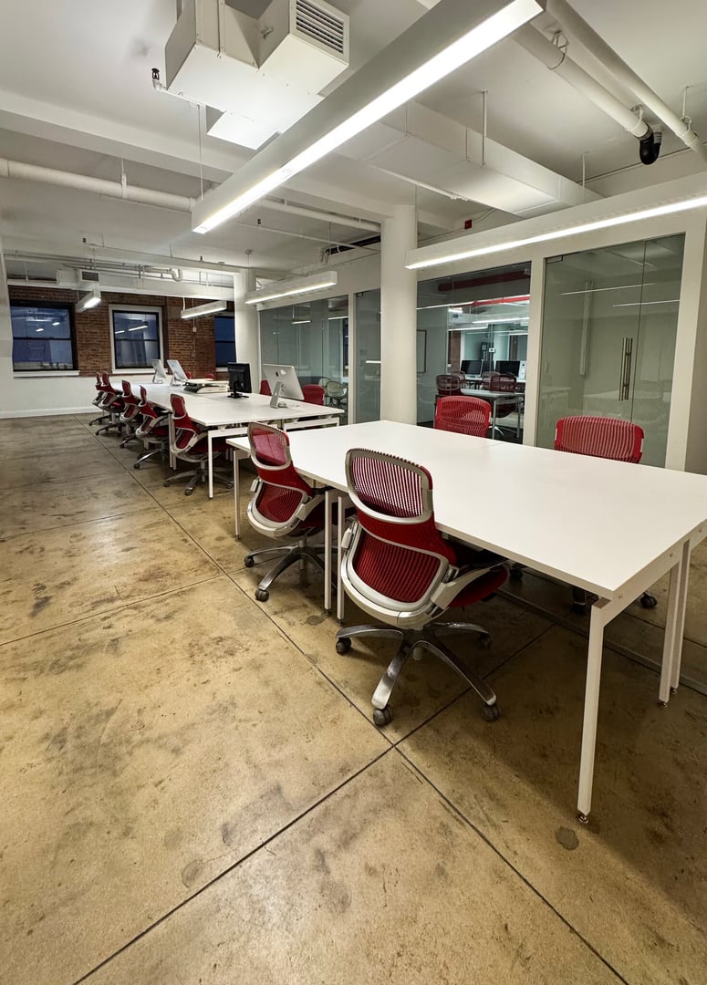 - Space features open seating with 30 desks, 4 offices/meeting rooms, and 3 phone rooms.