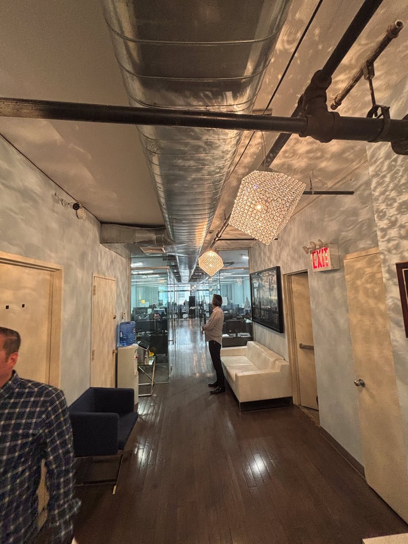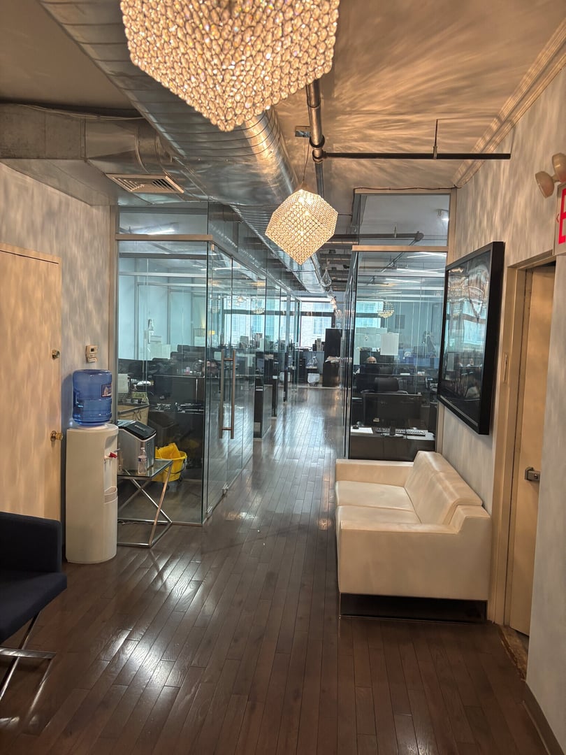 - Open ceiling, exposed duct, full glass offices for 10-plus people