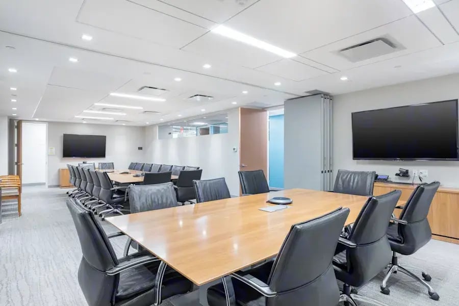 - Unit is currently built with one (1) large boardroom with a folding accordion wall, two (2) smaller conference rooms or executive offices, eight (8) offices, two (2) phone rooms, wet pantry and reception.