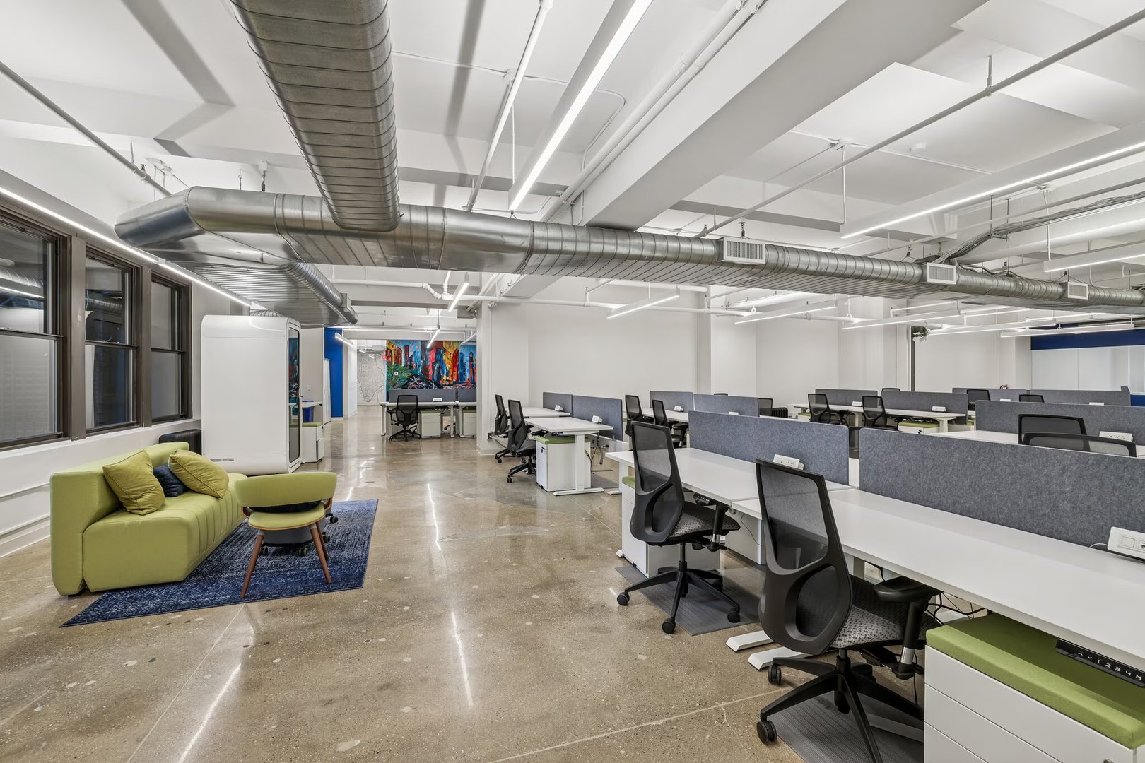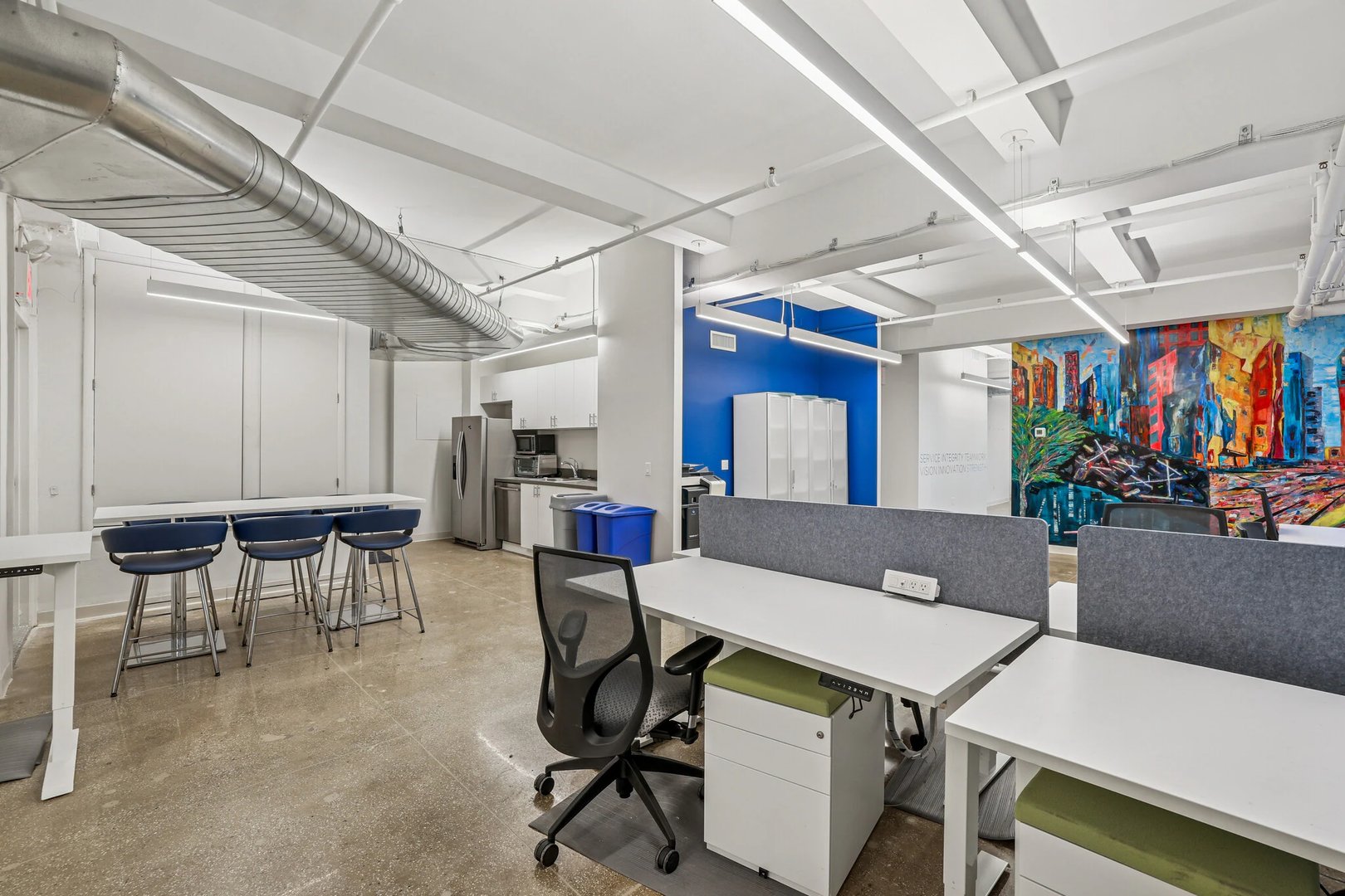 - 36 sit-stand workstations, 1 large conference room, 3 privates offices/meeting rooms and tenant controlled A/C