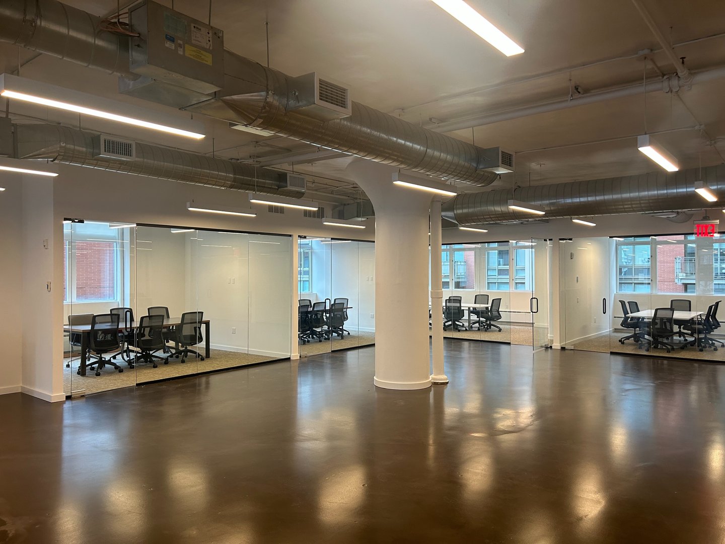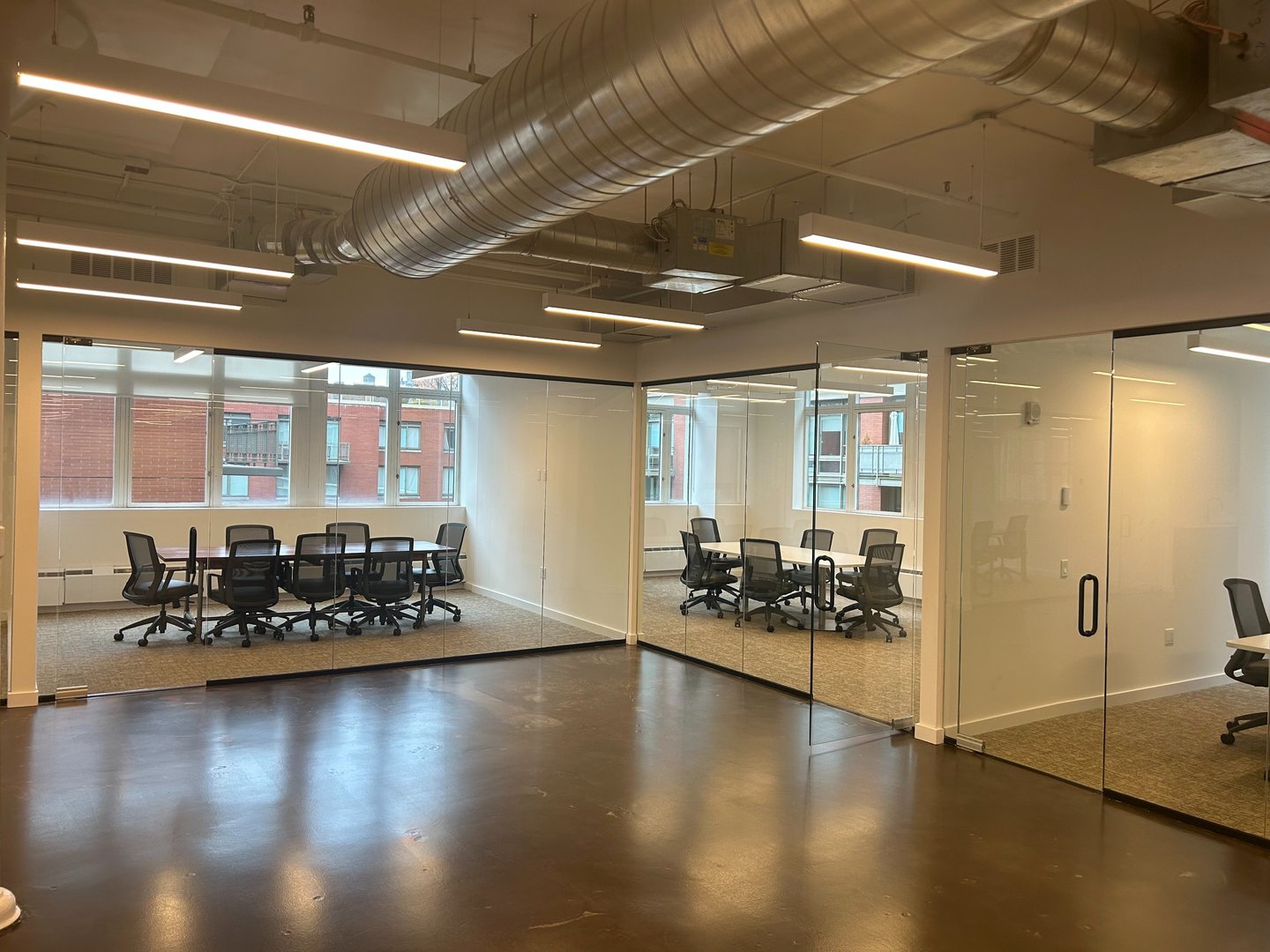 - 5 meeting rooms, 1 conference room, 2 phone booths and open seating with 50 sit-stand workstations