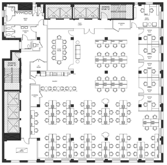 - Lobby features four (4) passenger elevators and freight has three (3) elevators.