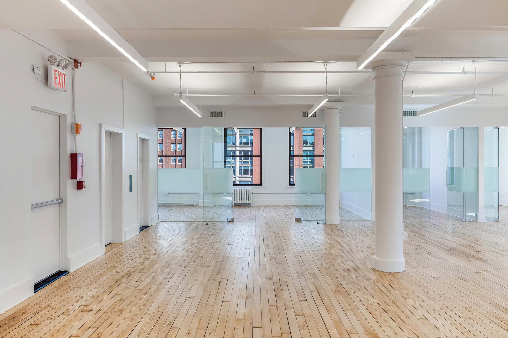 Glass finishes, hardwood floors, & high ceilings