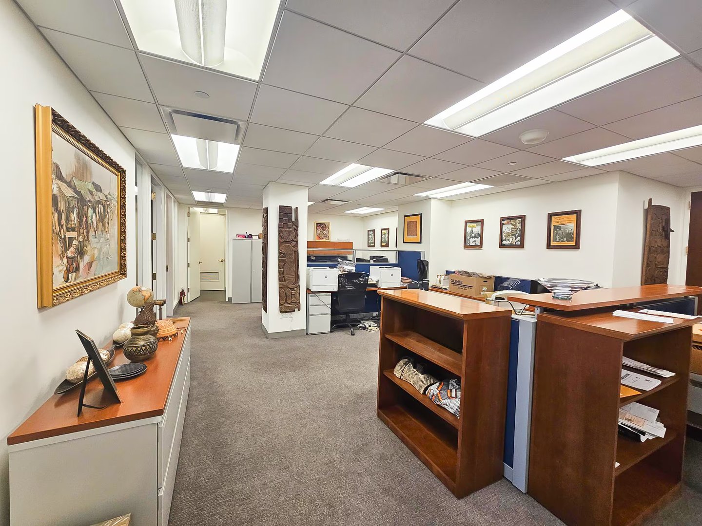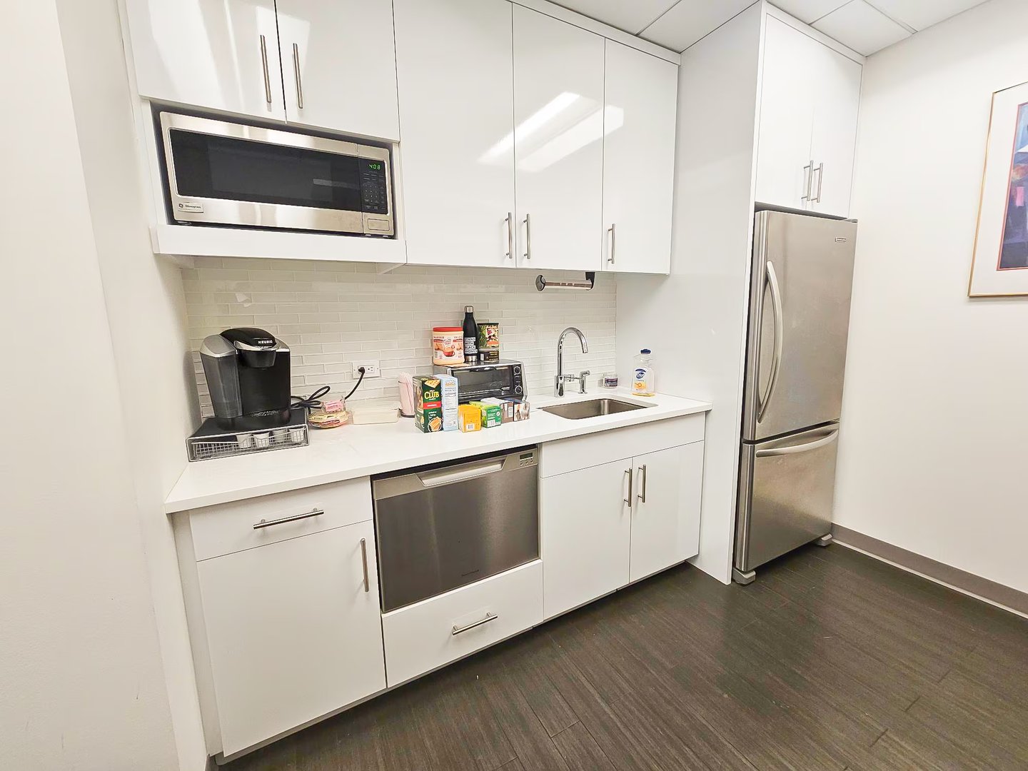 4 private offices, 1 glass fronted conference room, open area with 4 large workstations, wet pantry and furniture can be included