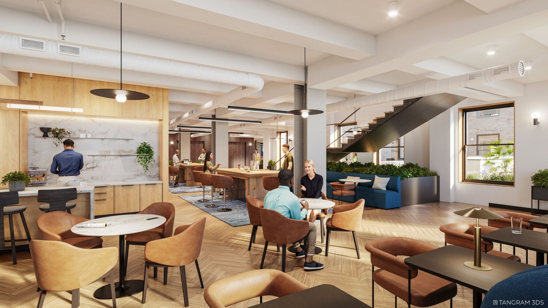 - Blue Bottle Coffee, JP Morgan Chase, Charles Schwab, and other conveniences in the building
