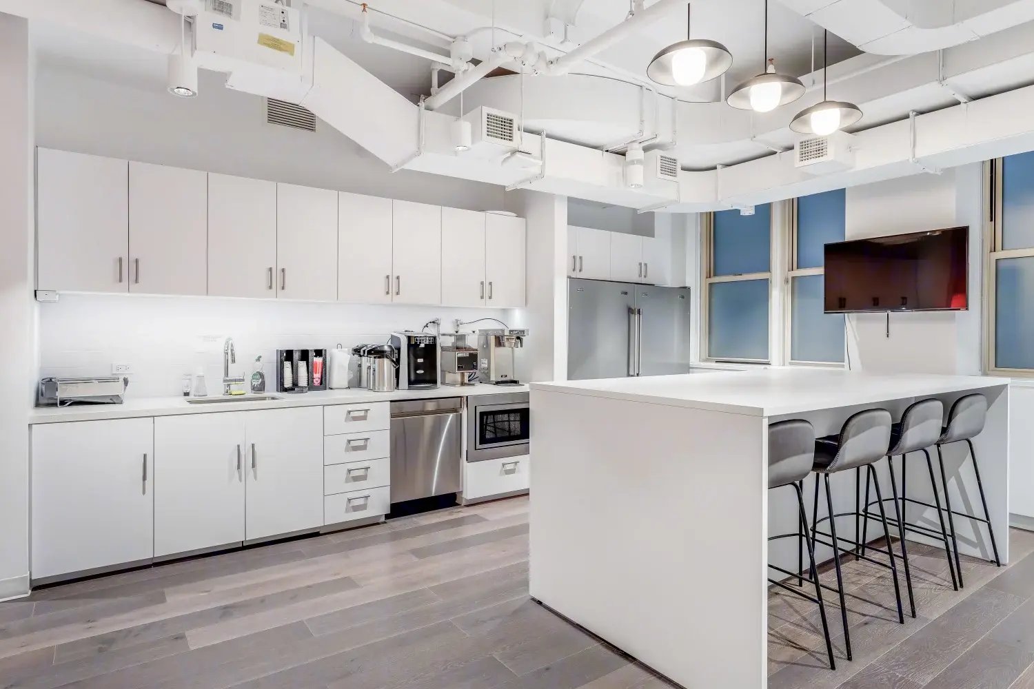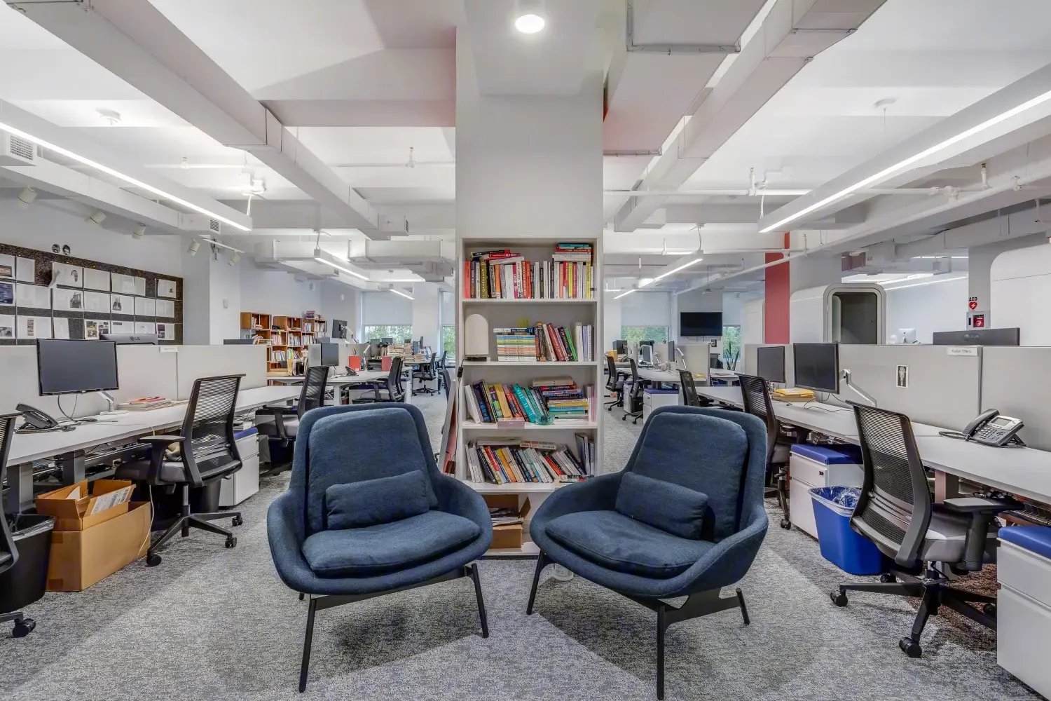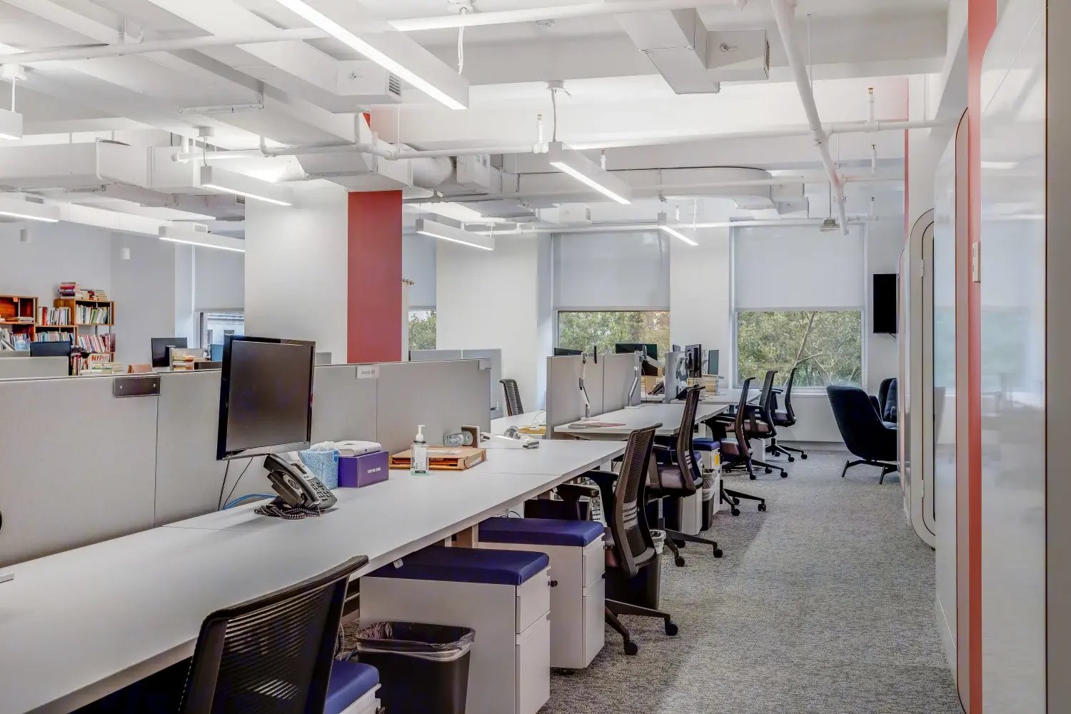 - Exposed ceiling, LED pendant lighting, exposed A/C ductwork, tenant-controlled central A/C