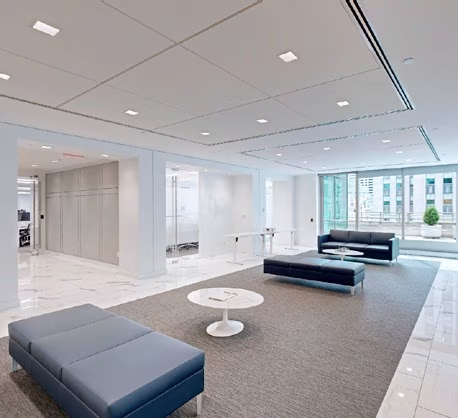 • The development comprises floor-to-ceiling glass walls and column-free space on tower floors, plus a sleek, modern lobby that features an Amses Cosma glass wall sculpture.