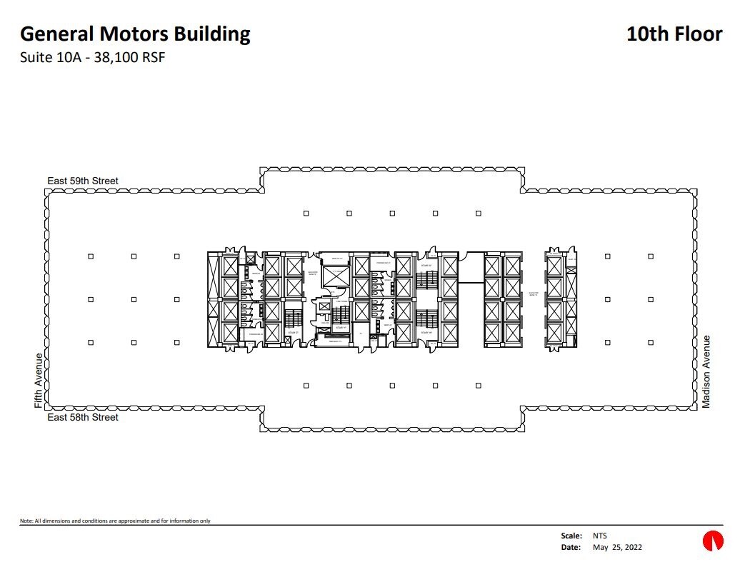 - The 2 million-square-foot GM Building spans the full block between Fifth and Madison avenues and East 58th and 59th streets, near the southeast corner of Central Park.