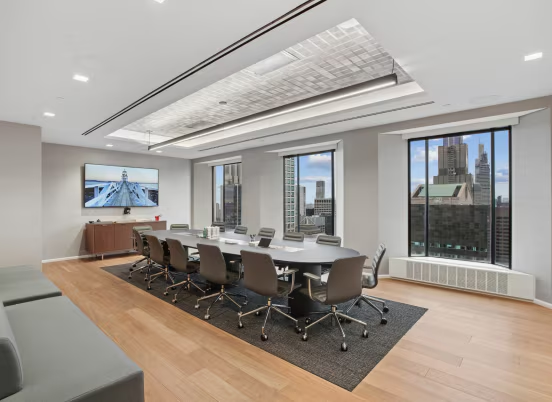 - Current configuration includes 1 boardroom, 1 large conference room, 2 small meeting rooms, 8 windowed partner offices (all with dramatic park or skyline views) and 34 workstations