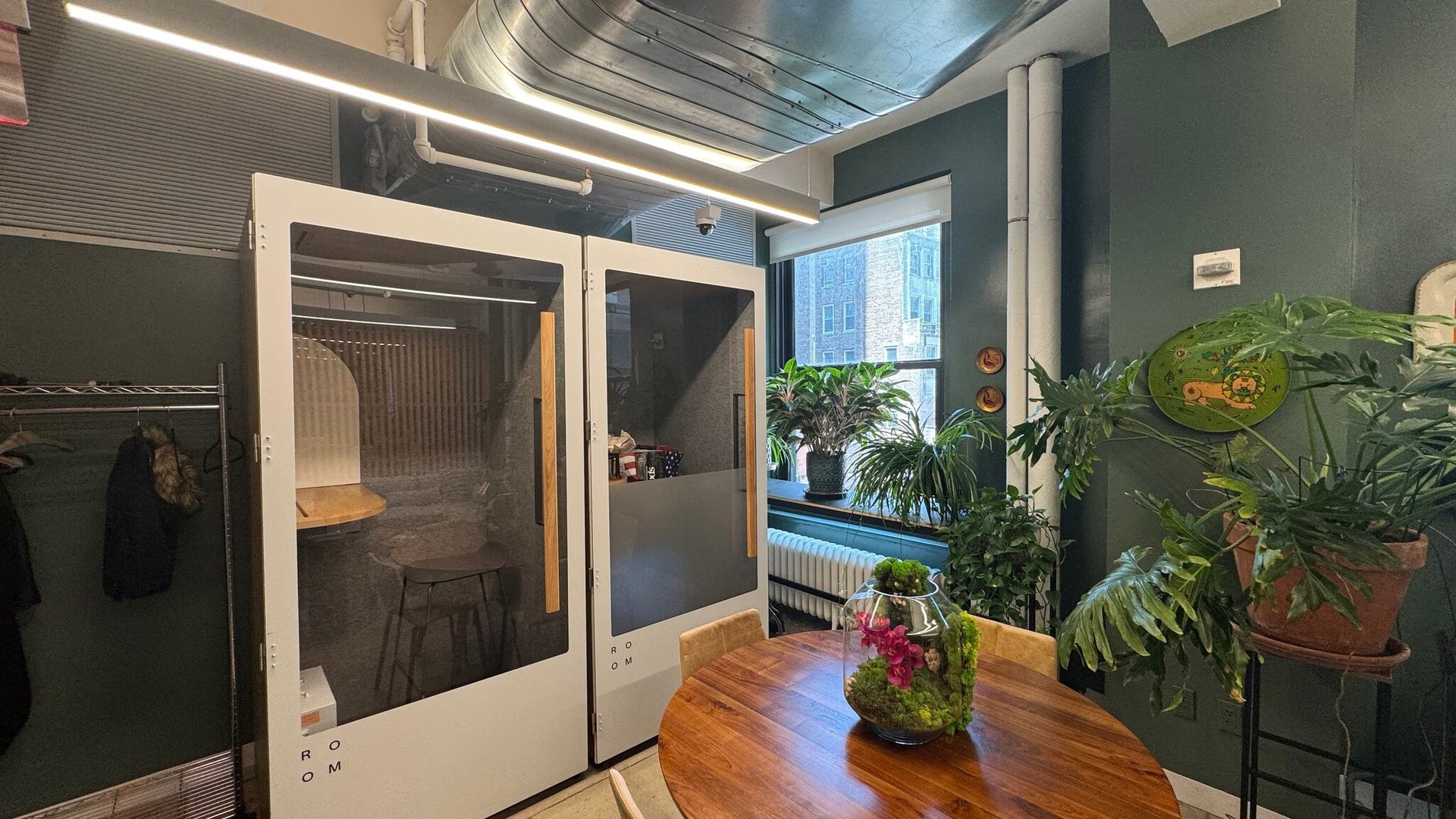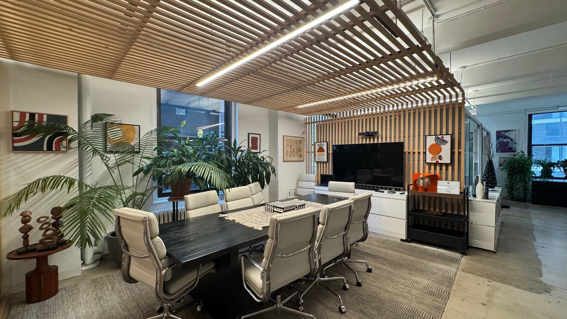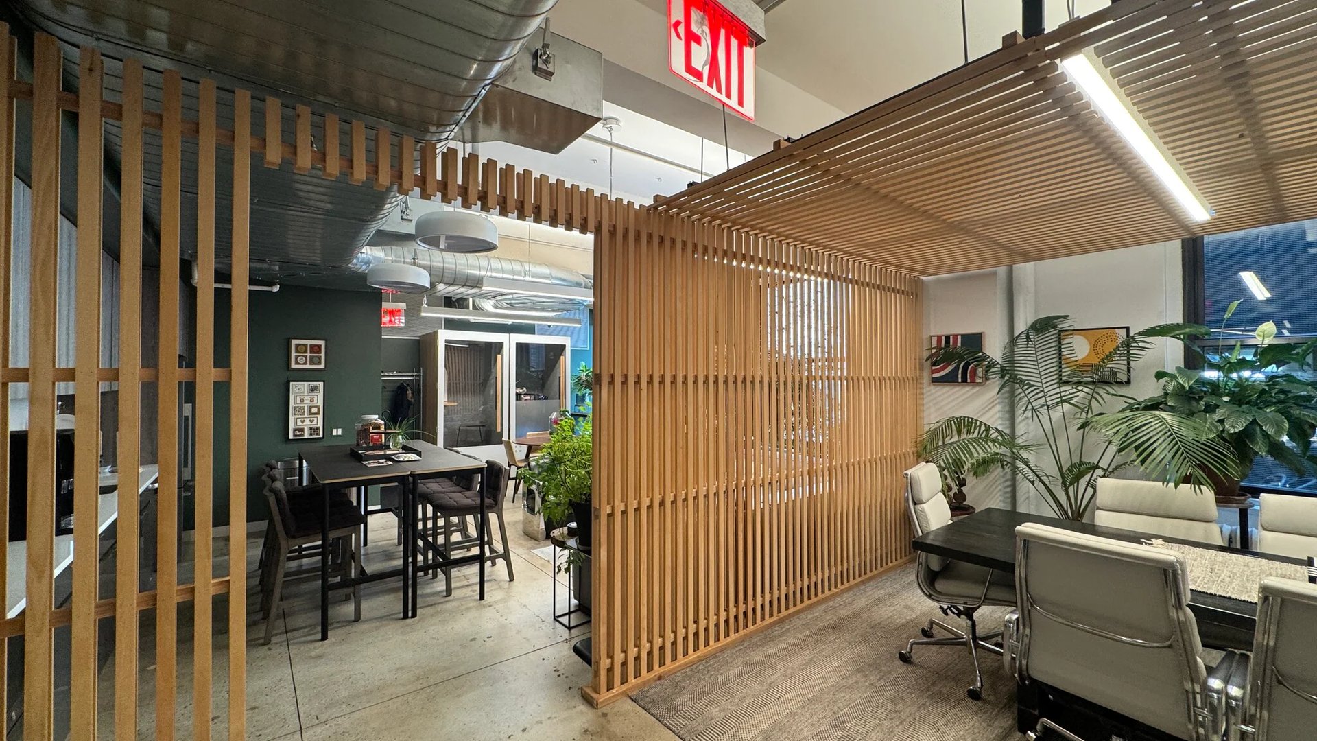 - The beautiful corner space is currently built with a reception area, two private offices, one conference room, and a wet pantry.