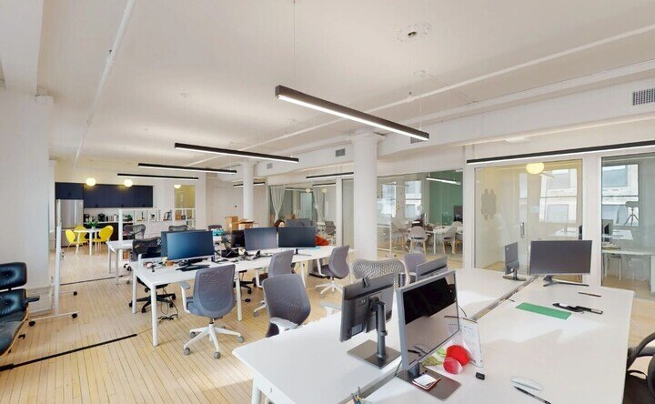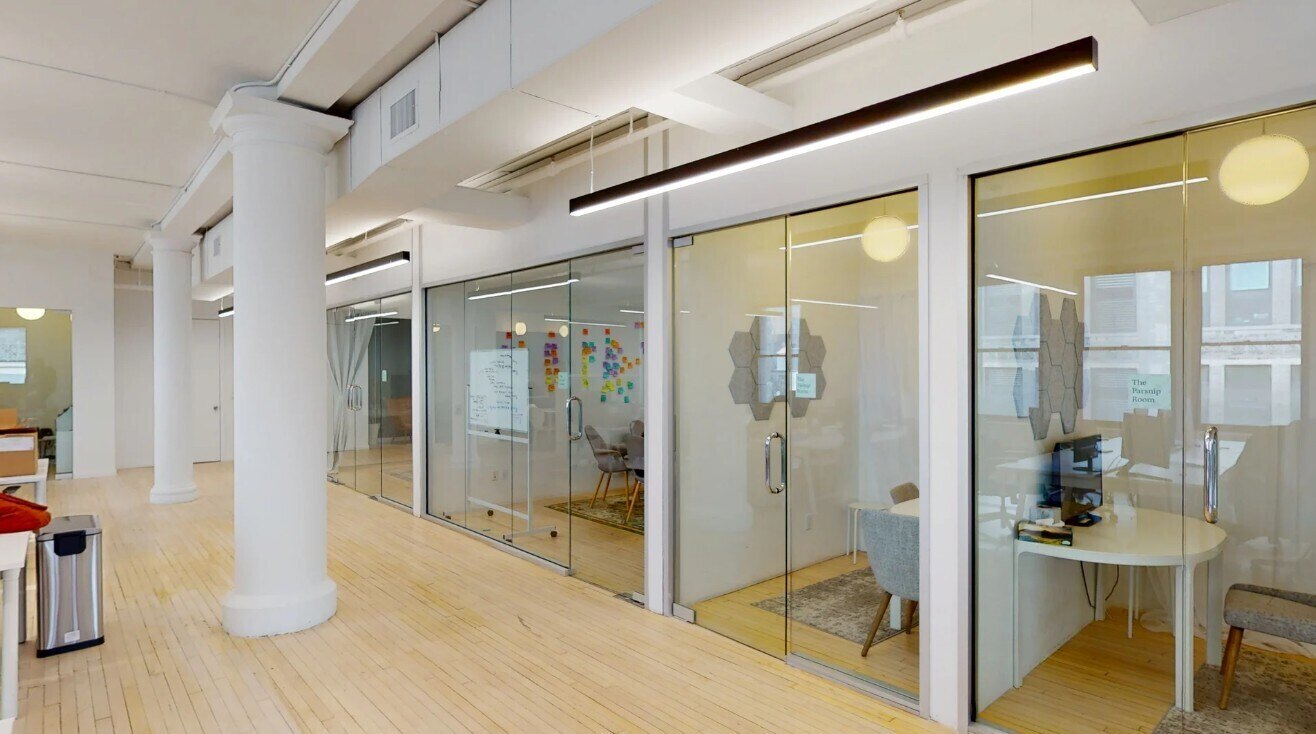 - Featuring exposed ceilings, sleek hardwood floors, and 8-foot linear lighting, the layout is thoughtfully designed for both functionality and style.